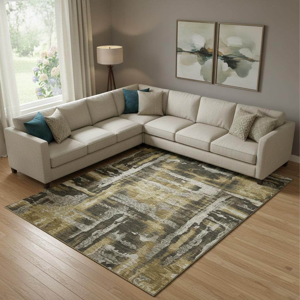Add some artistry to your room with this 9-foot x 12-foot coffee and gray abstract washable area rug with uv protection. Ideal for spaces with kids and pets, this rug is stain resistant to help repel dirt and spilled liquids. Built to last, this rug crafted from polyester fibers is known for its durability and long lasting appeal. Rugs are a great way to showcase your style, hide imperfections, warm your home and reduce noise. This larger sized, transitional styled rug is ready to create a focal point or statement piece in your room. 108.00-inch h x 144.00-inch w x 0.39-inch d.