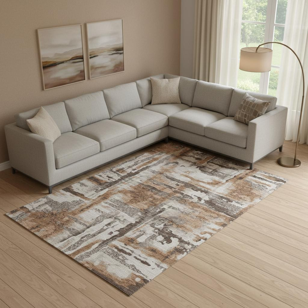 Set an inviting tone in your space with this 9-foot x 12-foot rust and brown abstract washable area rug with uv protection. Ideal for spaces with kids and pets, this rug is stain resistant to help repel dirt and spilled liquids. Built to last, this rug crafted from polyester fibers is known for its durability and long lasting appeal. Rugs are a great way to showcase your style, hide imperfections, warm your home and reduce noise. This larger sized, transitional styled rug is ready to create a focal point or statement piece in your room. 108.00-inch h x 144.00-inch w x 0.39-inch d.