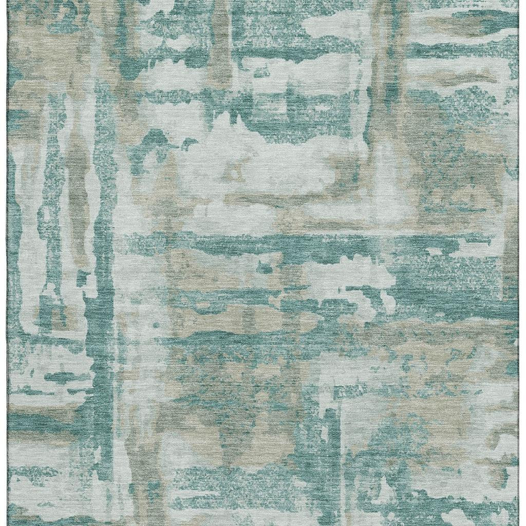 Add some artistry to your room with this 5-foot x 8-foot teal and taupe abstract washable area rug with uv protection. Ideal for spaces with kids and pets, this rug is stain resistant to help repel dirt and spilled liquids. Built to last, this rug crafted from polyester fibers is known for its durability and long lasting appeal. Rugs are a great way to showcase your style, hide imperfections, warm your home and reduce noise. This larger sized, transitional styled rug is ready to create a focal point or statement piece in your room. 60.00-inch h x 90.00-inch w x 0.39-inch d.