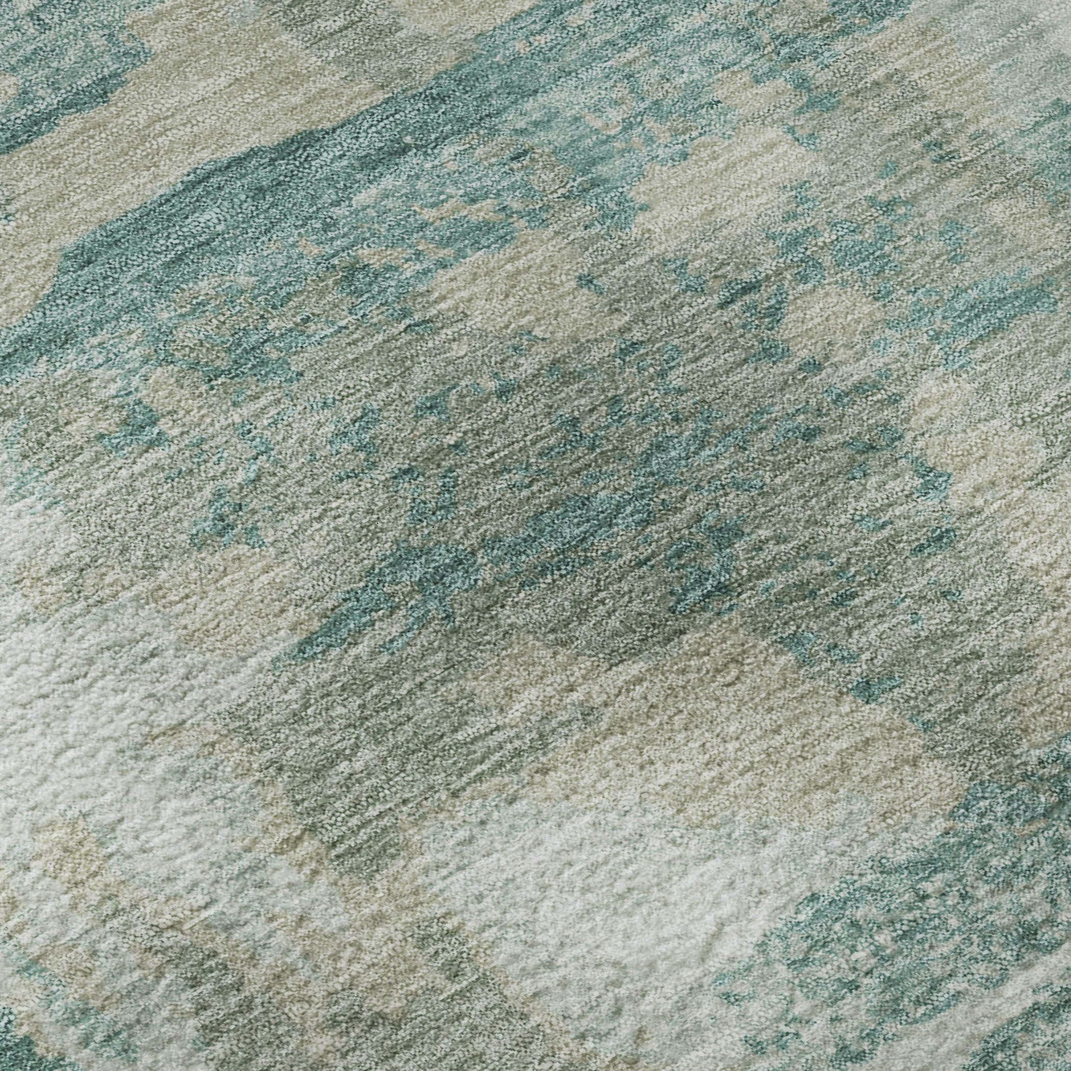 This 9-foot x 12-foot teal and taupe abstract washable area rug with uv protection, is a great way to add warmth to a room. Ideal for spaces with kids and pets, this rug is stain resistant to help repel dirt and spilled liquids. Built to last, this rug crafted from polyester fibers is known for its durability and long lasting appeal. Rugs are a great way to showcase your style, hide imperfections, warm your home and reduce noise. This larger sized, transitional styled rug is ready to create a focal point or statement piece in your room. 108.00-inch h x 144.00-inch w x 0.39-inch d.