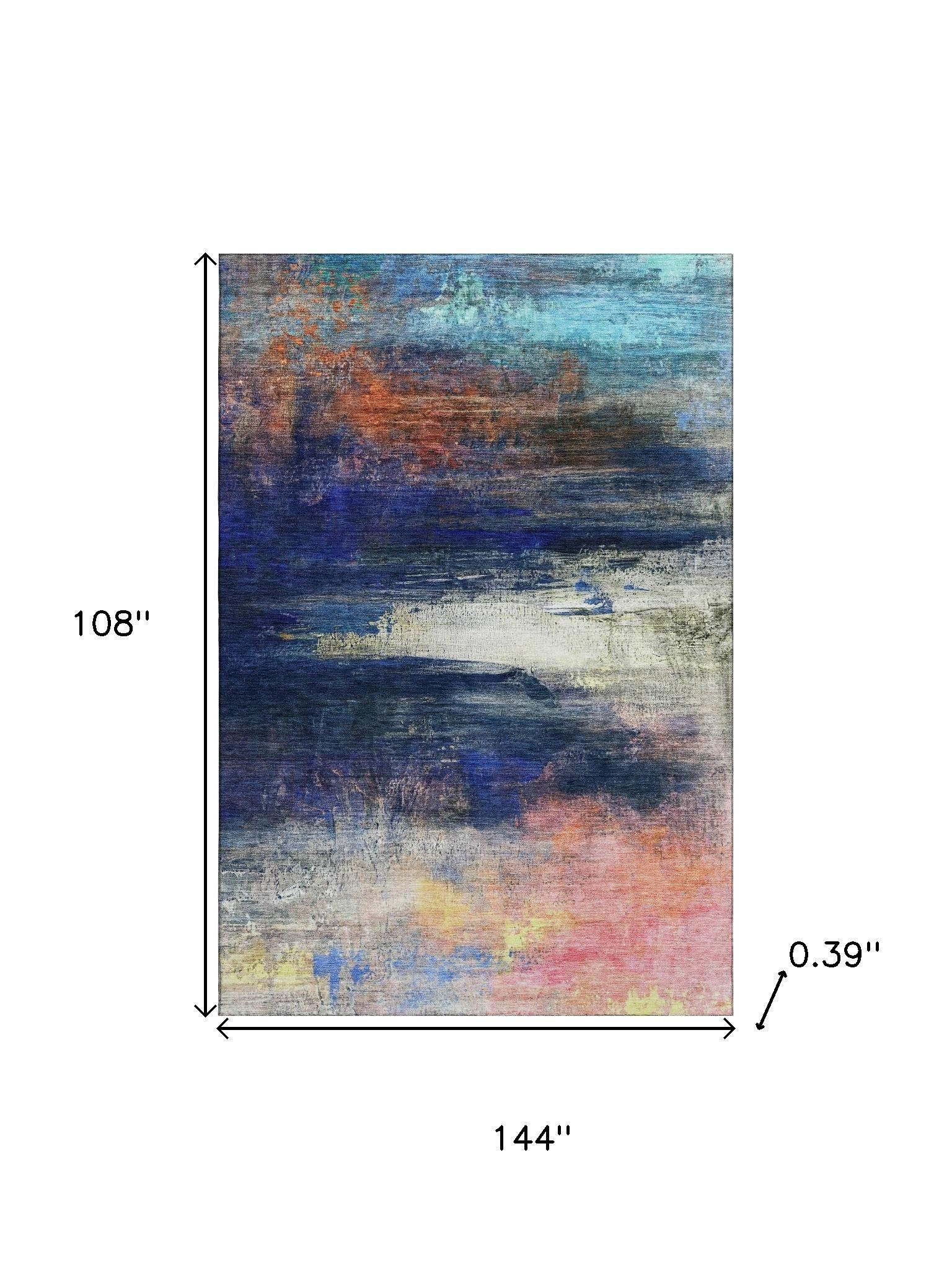 Set an inviting tone in your space with this 9-foot x 12-foot blue and pink abstract washable area rug with uv protection. Ideal for spaces with kids and pets, this rug is stain resistant to help repel dirt and spilled liquids. Built to last, this rug crafted from polyester fibers is known for its durability and long lasting appeal. Rugs are a great way to showcase your style, hide imperfections, warm your home and reduce noise. This larger sized, transitional styled rug is ready to create a focal point or statement piece in your room. 108.00-inch h x 144.00-inch w x 0.39-inch d.