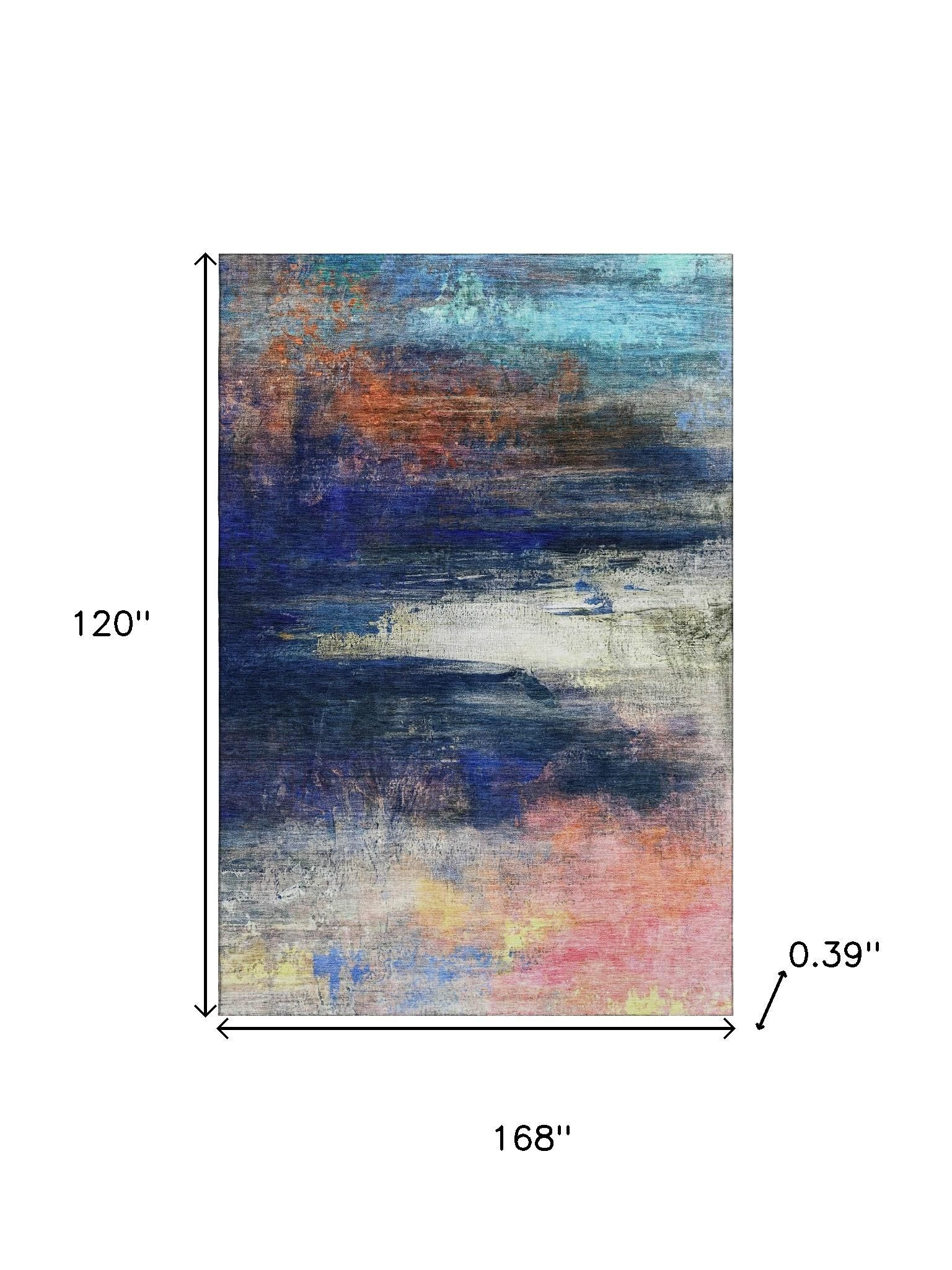 This 10-foot x 14-foot blue and pink abstract washable area rug with uv protection, is a great way to add warmth to a room. Ideal for spaces with kids and pets, this rug is stain resistant to help repel dirt and spilled liquids. Built to last, this rug crafted from polyester fibers is known for its durability and long lasting appeal. Rugs are a great way to showcase your style, hide imperfections, warm your home and reduce noise. This larger sized, transitional styled rug is ready to create a focal point or statement piece in your room. 120.00-inch h x 168.00-inch w x 0.39-inch d.