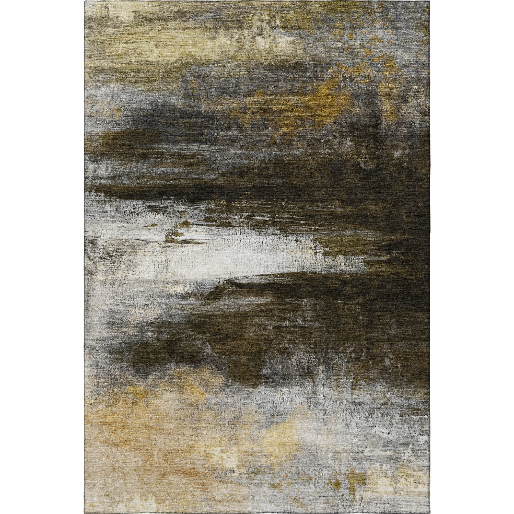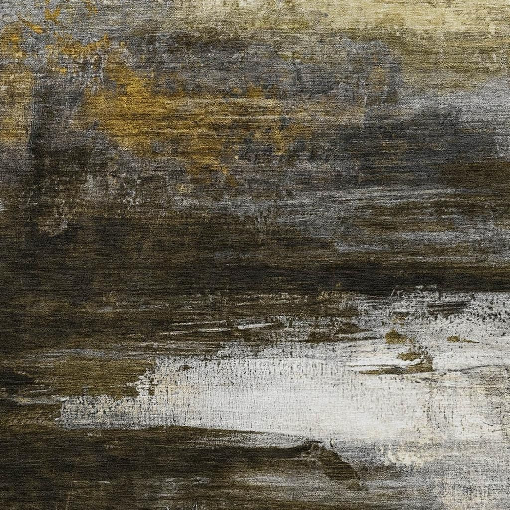 Set an inviting tone in your space with this 3-foot x 5-foot chocolate and gold abstract washable area rug with uv protection. Ideal for spaces with kids and pets, this rug is stain resistant to help repel dirt and spilled liquids. Built to last, this rug crafted from polyester fibers is known for its durability and long lasting appeal. Rugs are a great way to showcase your style, hide imperfections, warm your home and reduce noise. This smaller sized, transitional styled rug is just what you need for your walkway, bedside, in front of door, cabinet, refrigerator, or chair. 36.00-inch h x 60.00-inch w x 0.39-inch d.