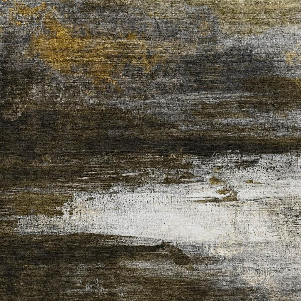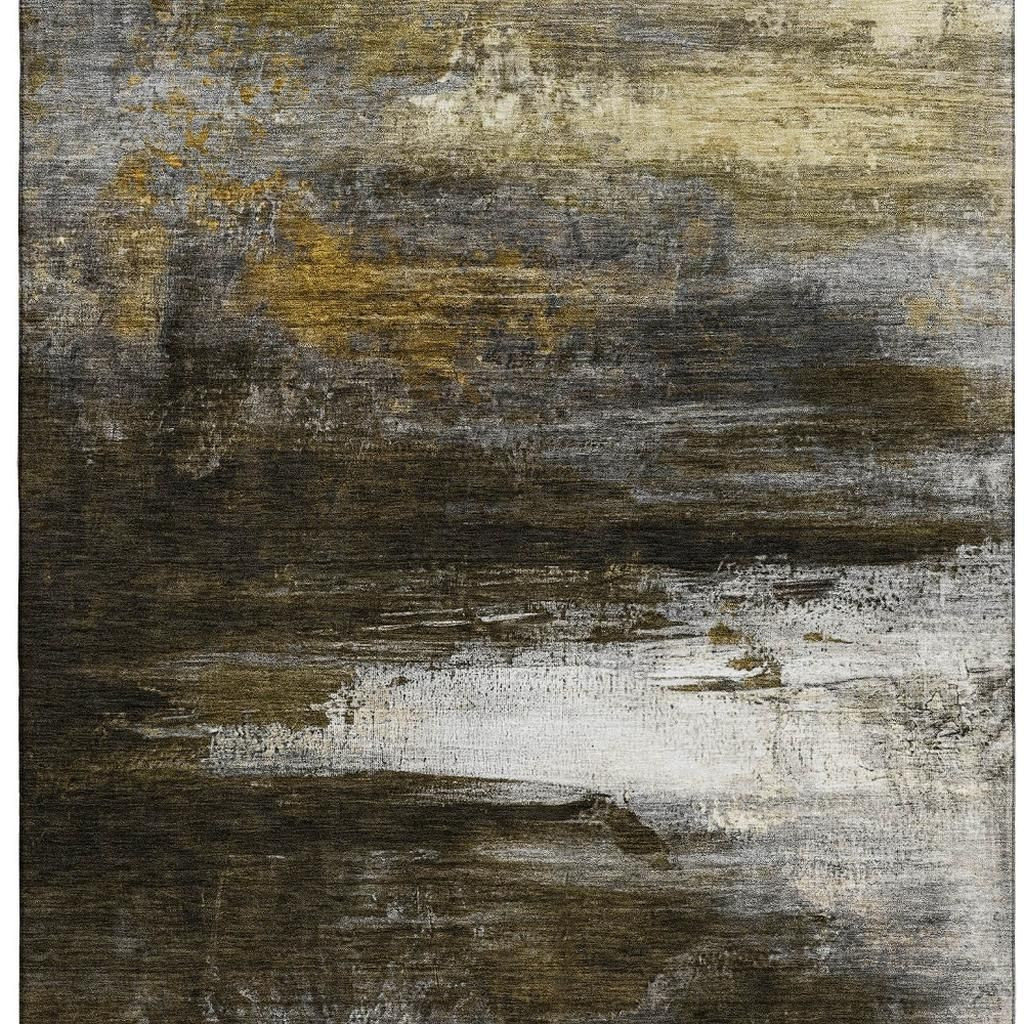 Add some artistry to your room with this 10-foot x 14-foot chocolate and gold abstract washable area rug with uv protection. Ideal for spaces with kids and pets, this rug is stain resistant to help repel dirt and spilled liquids. Built to last, this rug crafted from polyester fibers is known for its durability and long lasting appeal. Rugs are a great way to showcase your style, hide imperfections, warm your home and reduce noise. This larger sized, transitional styled rug is ready to create a focal point or statement piece in your room. 120.00-inch h x 168.00-inch w x 0.39-inch d.