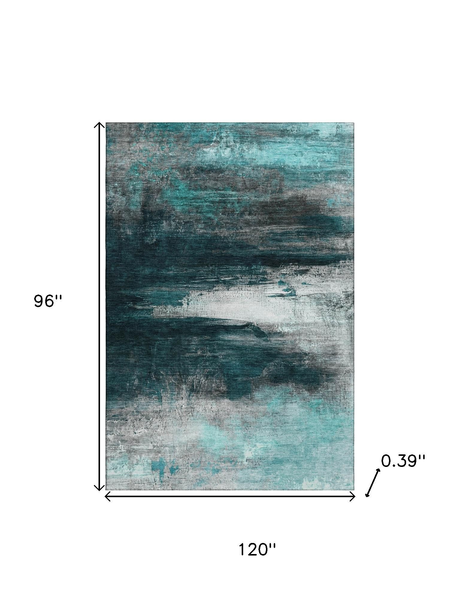 Add great coloration and comfortable texture to your space with this 8-foot x 10-foot teal and gray abstract washable area rug with uv protection. Ideal for spaces with kids and pets, this rug is stain resistant to help repel dirt and spilled liquids. Built to last, this rug crafted from polyester fibers is known for its durability and long lasting appeal. Rugs are a great way to showcase your style, hide imperfections, warm your home and reduce noise. This larger sized, transitional styled rug is ready to create a focal point or statement piece in your room. 96.00-inch h x 120.00-inch w x 0.39-inch d.