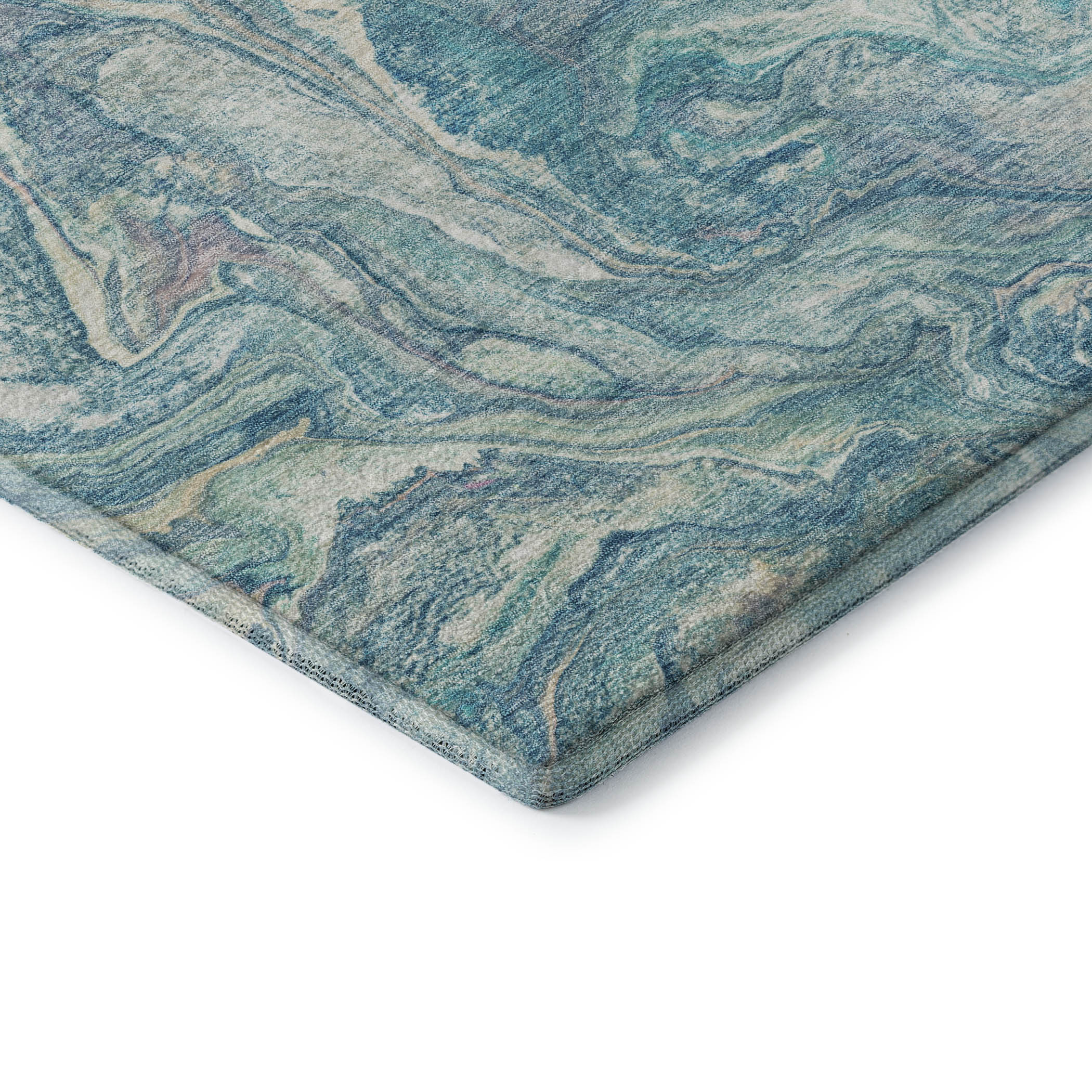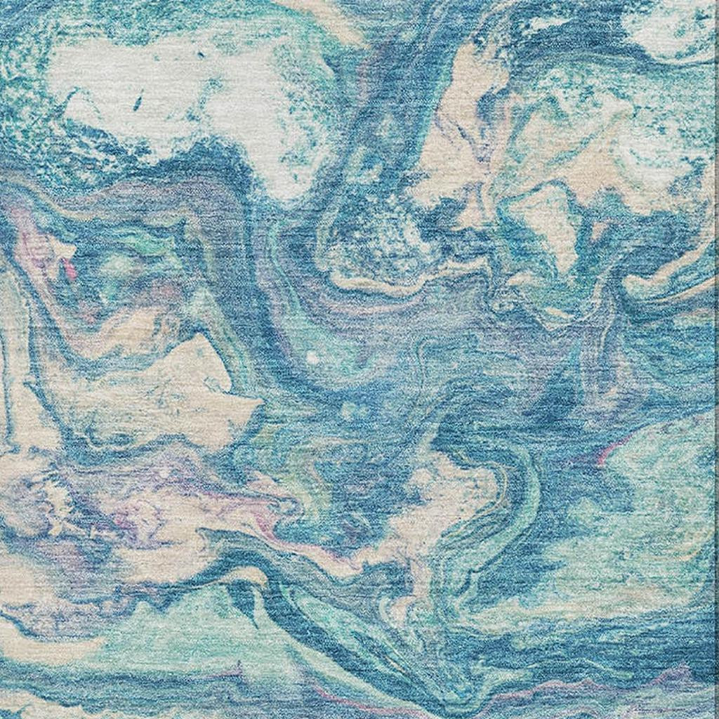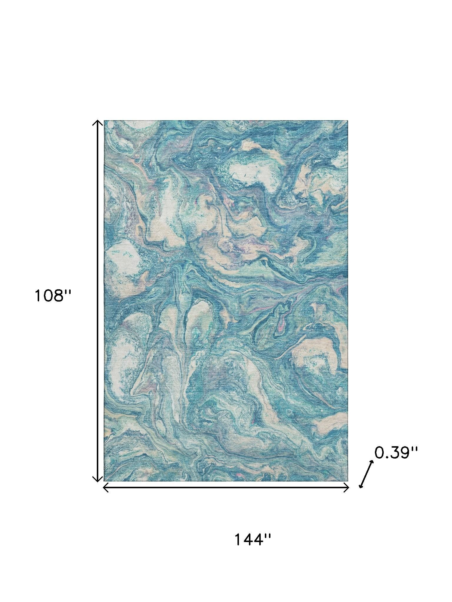 Add some artistry to your room with this 9-foot x 12-foot teal and ivory abstract washable area rug with uv protection. Ideal for spaces with kids and pets, this rug is stain resistant to help repel dirt and spilled liquids. Built to last, this rug crafted from polyester fibers is known for its durability and long lasting appeal. Rugs are a great way to showcase your style, hide imperfections, warm your home and reduce noise. This larger sized, transitional styled rug is ready to create a focal point or statement piece in your room. 108.00-inch h x 144.00-inch w x 0.39-inch d.