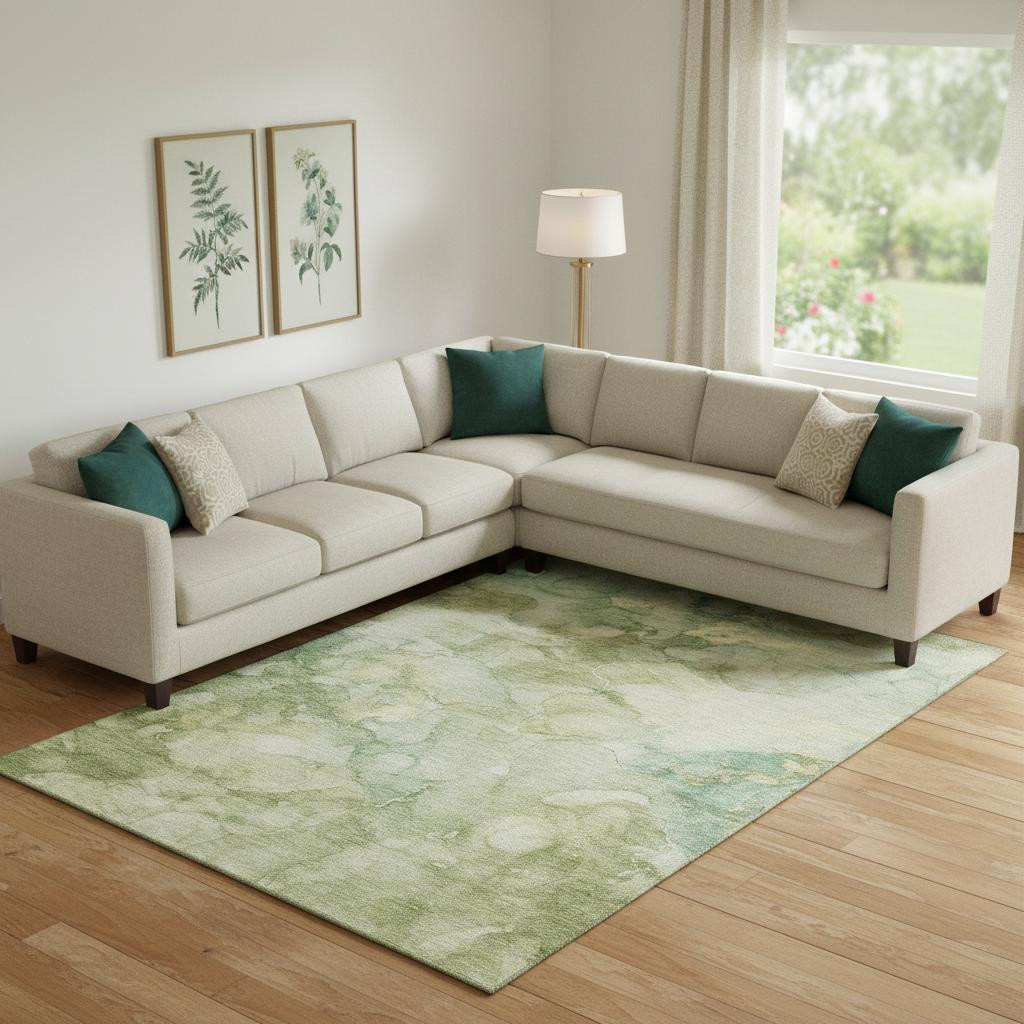 Add some artistry to your room with this 9-foot x 12-foot sage and beige abstract washable area rug with uv protection. Ideal for spaces with kids and pets, this rug is stain resistant to help repel dirt and spilled liquids. Built to last, this rug crafted from polyester fibers is known for its durability and long lasting appeal. Rugs are a great way to showcase your style, hide imperfections, warm your home and reduce noise. This larger sized, transitional styled rug is ready to create a focal point or statement piece in your room. 108.00-inch h x 144.00-inch w x 0.39-inch d.