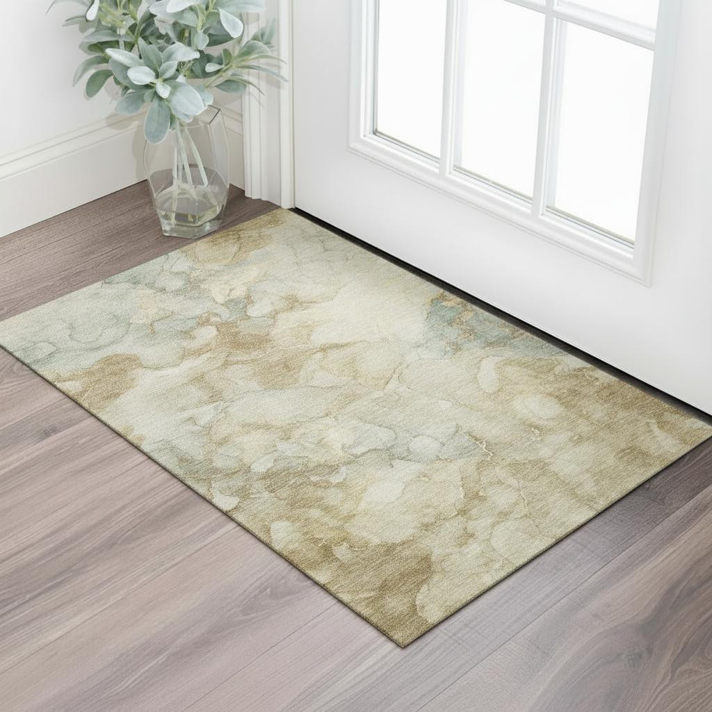 Set an inviting tone in your space with this 3-foot x 5-foot beige and ivory abstract washable area rug with uv protection. Ideal for spaces with kids and pets, this rug is stain resistant to help repel dirt and spilled liquids. Built to last, this rug crafted from polyester fibers is known for its durability and long lasting appeal. Rugs are a great way to showcase your style, hide imperfections, warm your home and reduce noise. This smaller sized, transitional styled rug is just what you need for your walkway, bedside, in front of door, cabinet, refrigerator, or chair. 36.00-inch h x 60.00-inch w x 0.39-inch d.