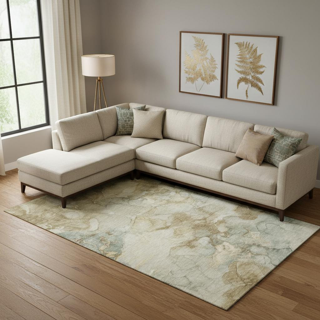 Add great coloration and comfortable texture to your space with this 8-foot x 10-foot beige and ivory abstract washable area rug with uv protection. Ideal for spaces with kids and pets, this rug is stain resistant to help repel dirt and spilled liquids. Built to last, this rug crafted from polyester fibers is known for its durability and long lasting appeal. Rugs are a great way to showcase your style, hide imperfections, warm your home and reduce noise. This larger sized, transitional styled rug is ready to create a focal point or statement piece in your room. 96.00-inch h x 120.00-inch w x 0.39-inch d.