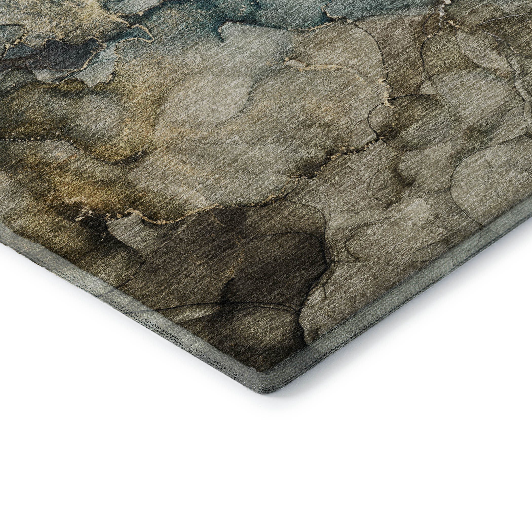 Set an inviting tone in your space with this 8-foot x 10-foot brown and teal abstract washable area rug with uv protection. Ideal for spaces with kids and pets, this rug is stain resistant to help repel dirt and spilled liquids. Built to last, this rug crafted from polyester fibers is known for its durability and long lasting appeal. Rugs are a great way to showcase your style, hide imperfections, warm your home and reduce noise. This larger sized, transitional styled rug is ready to create a focal point or statement piece in your room. 96.00-inch h x 120.00-inch w x 0.39-inch d.