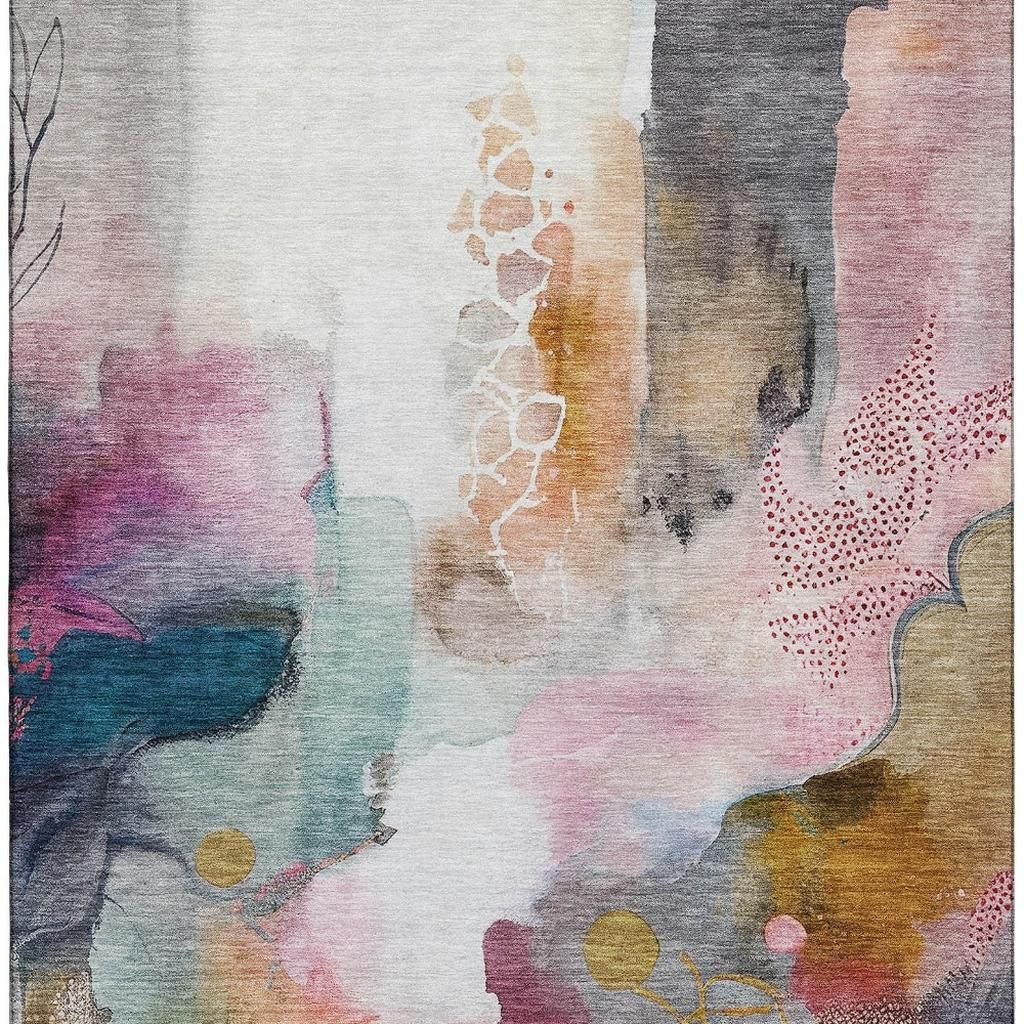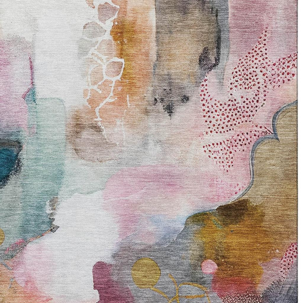 Add great coloration and comfortable texture to your space with this 3-foot x 5-foot blush and ivory abstract washable area rug with uv protection. Ideal for spaces with kids and pets, this rug is stain resistant to help repel dirt and spilled liquids. Built to last, this rug crafted from polyester fibers is known for its durability and long lasting appeal. Rugs are a great way to showcase your style, hide imperfections, warm your home and reduce noise. This smaller sized, transitional styled rug is just what you need for your walkway, bedside, in front of door, cabinet, refrigerator, or chair. 36.00-inch h x 60.00-inch w x 0.39-inch d.