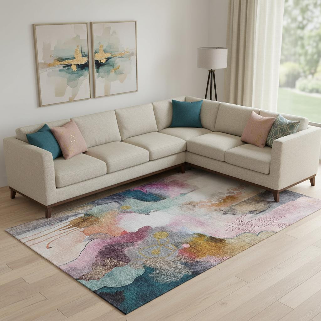 Add great coloration and comfortable texture to your space with this 8-foot x 10-foot blush and ivory abstract washable area rug with uv protection. Ideal for spaces with kids and pets, this rug is stain resistant to help repel dirt and spilled liquids. Built to last, this rug crafted from polyester fibers is known for its durability and long lasting appeal. Rugs are a great way to showcase your style, hide imperfections, warm your home and reduce noise. This larger sized, transitional styled rug is ready to create a focal point or statement piece in your room. 96.00-inch h x 120.00-inch w x 0.39-inch d.