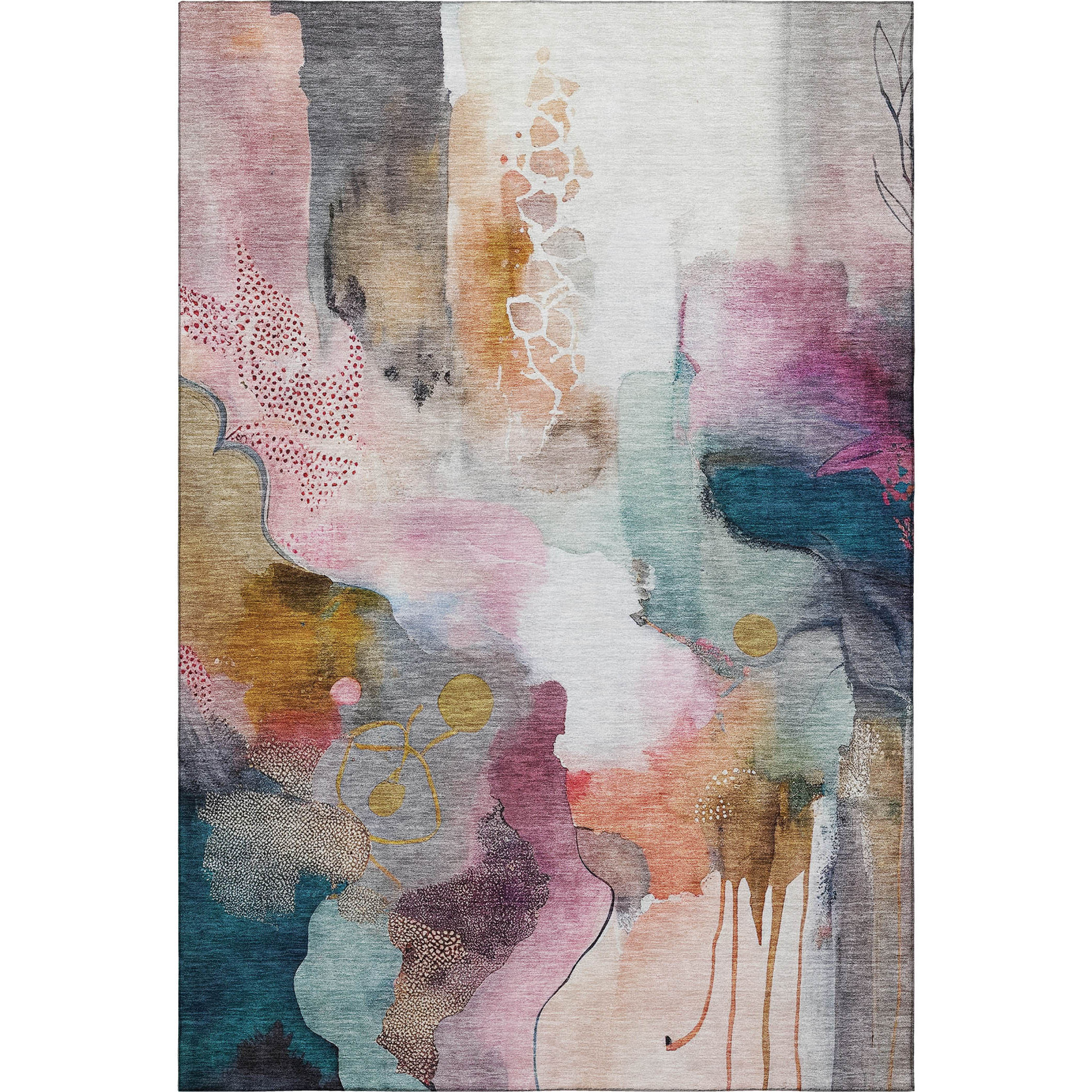 Add some artistry to your room with this 10-foot x 14-foot blush and ivory abstract washable area rug with uv protection. Ideal for spaces with kids and pets, this rug is stain resistant to help repel dirt and spilled liquids. Built to last, this rug crafted from polyester fibers is known for its durability and long lasting appeal. Rugs are a great way to showcase your style, hide imperfections, warm your home and reduce noise. This larger sized, transitional styled rug is ready to create a focal point or statement piece in your room. 120.00-inch h x 168.00-inch w x 0.39-inch d.