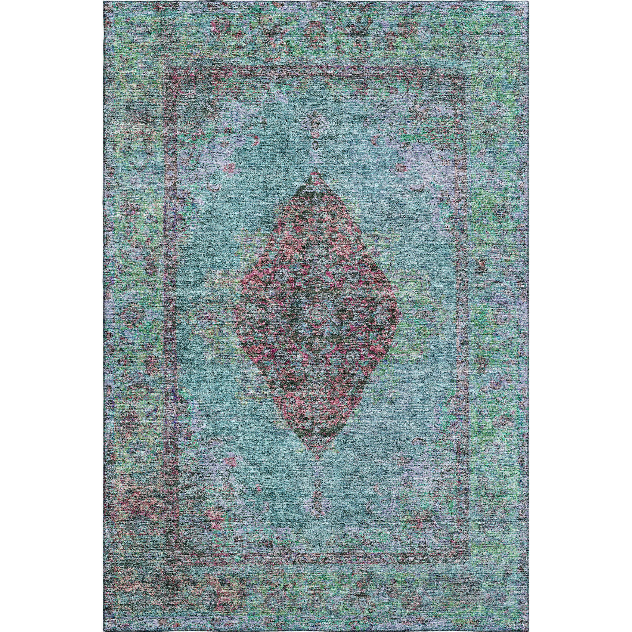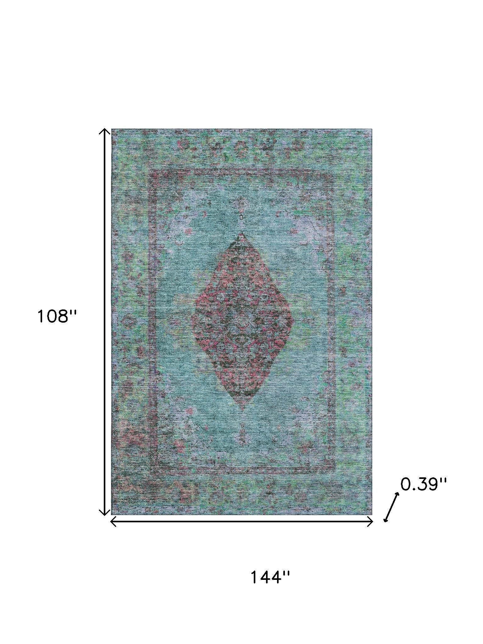 Set an inviting tone in your space with this 9-foot x 12-foot aqua and purple medallion washable area rug with uv protection. Ideal for spaces with kids and pets, this rug is stain resistant to help repel dirt and spilled liquids. Built to last, this rug crafted from polyester fibers is known for its durability and long lasting appeal. Rugs are a great way to showcase your style, hide imperfections, warm your home and reduce noise. This larger sized, traditional styled rug is ready to create a focal point or statement piece in your room. 108.00-inch h x 144.00-inch w x 0.39-inch d.