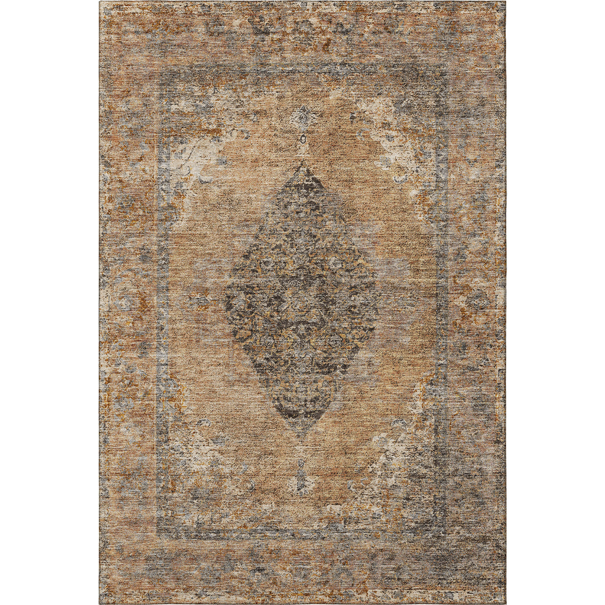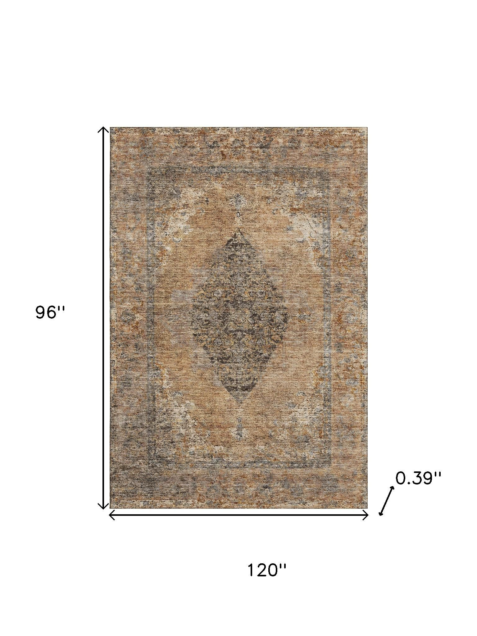 Add some artistry to your room with this 8-foot x 10-foot copper and brown medallion washable area rug with uv protection. Ideal for spaces with kids and pets, this rug is stain resistant to help repel dirt and spilled liquids. Built to last, this rug crafted from polyester fibers is known for its durability and long lasting appeal. Rugs are a great way to showcase your style, hide imperfections, warm your home and reduce noise. This larger sized, traditional styled rug is ready to create a focal point or statement piece in your room. 96.00-inch h x 120.00-inch w x 0.39-inch d.