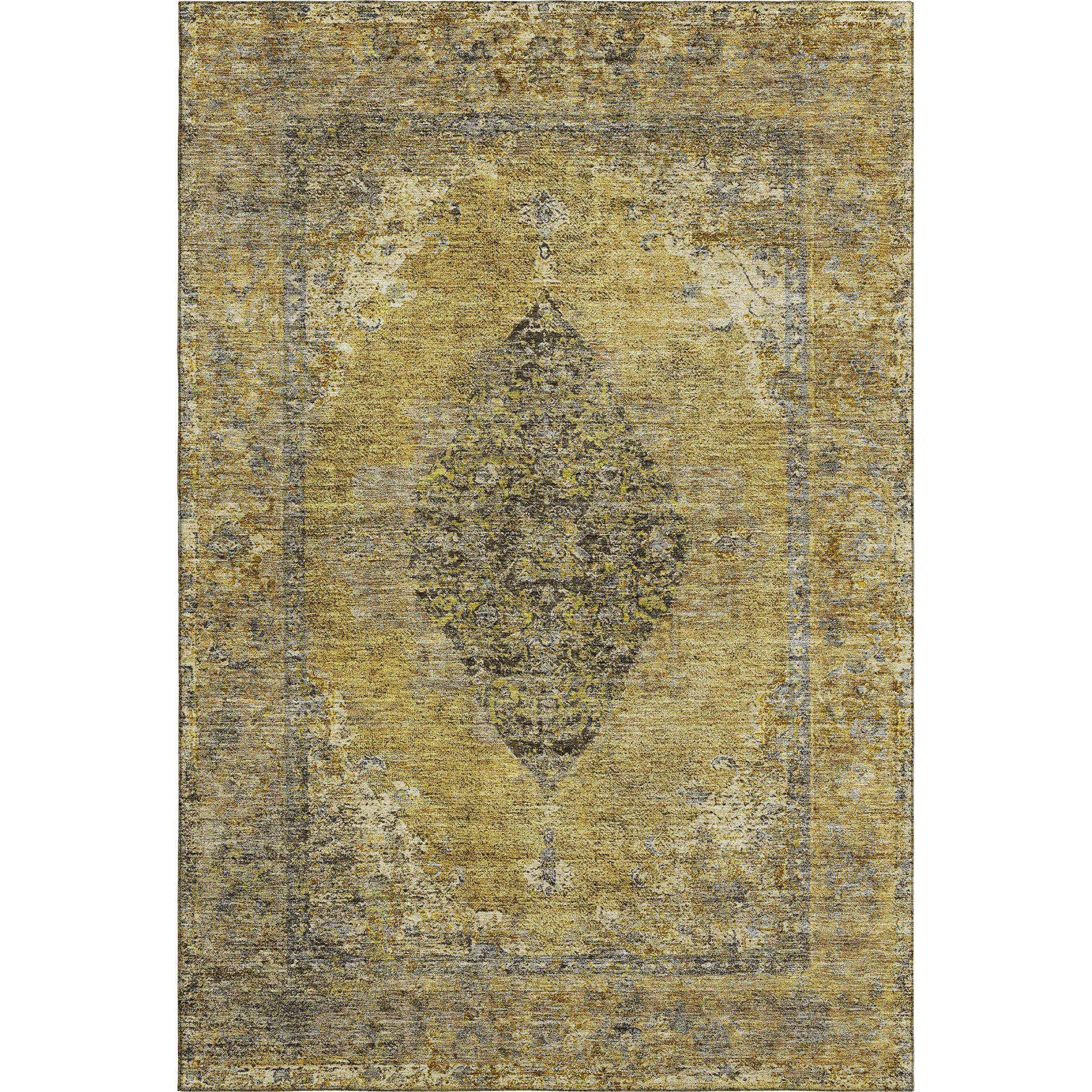 This 8-foot x 10-foot wheat and gray medallion washable area rug with uv protection, is a great way to add warmth to a room. Ideal for spaces with kids and pets, this rug is stain resistant to help repel dirt and spilled liquids. Built to last, this rug crafted from polyester fibers is known for its durability and long lasting appeal. Rugs are a great way to showcase your style, hide imperfections, warm your home and reduce noise. This larger sized, traditional styled rug is ready to create a focal point or statement piece in your room. 96.00-inch h x 120.00-inch w x 0.39-inch d.