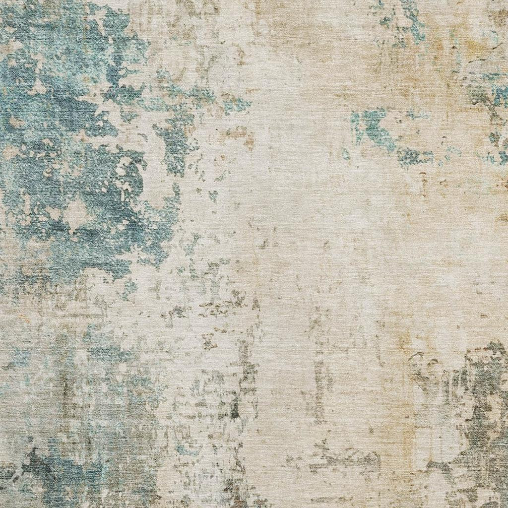 This 8-foot x 10-foot ivory and teal abstract washable area rug with uv protection, is a great way to add warmth to a room. Ideal for spaces with kids and pets, this rug is stain resistant to help repel dirt and spilled liquids. Built to last, this rug crafted from polyester fibers is known for its durability and long lasting appeal. Rugs are a great way to showcase your style, hide imperfections, warm your home and reduce noise. This larger sized, transitional styled rug is ready to create a focal point or statement piece in your room. 96.00-inch h x 120.00-inch w x 0.39-inch d.