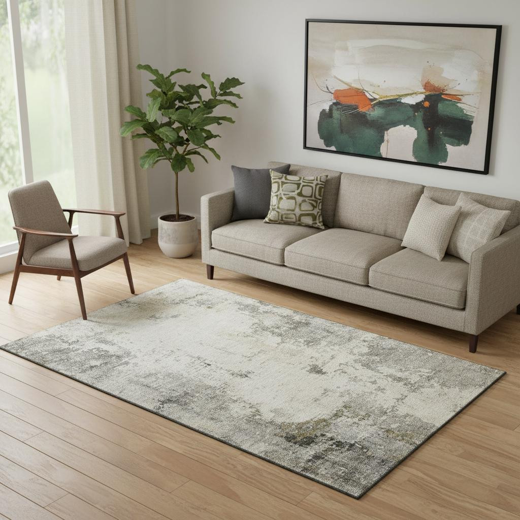 Add great coloration and comfortable texture to your space with this 5-foot x 8-foot pewter and ivory abstract washable area rug with uv protection. Ideal for spaces with kids and pets, this rug is stain resistant to help repel dirt and spilled liquids. Built to last, this rug crafted from polyester fibers is known for its durability and long lasting appeal. Rugs are a great way to showcase your style, hide imperfections, warm your home and reduce noise. This larger sized, transitional styled rug is ready to create a focal point or statement piece in your room. 60.00-inch h x 90.00-inch w x 0.39-inch d.