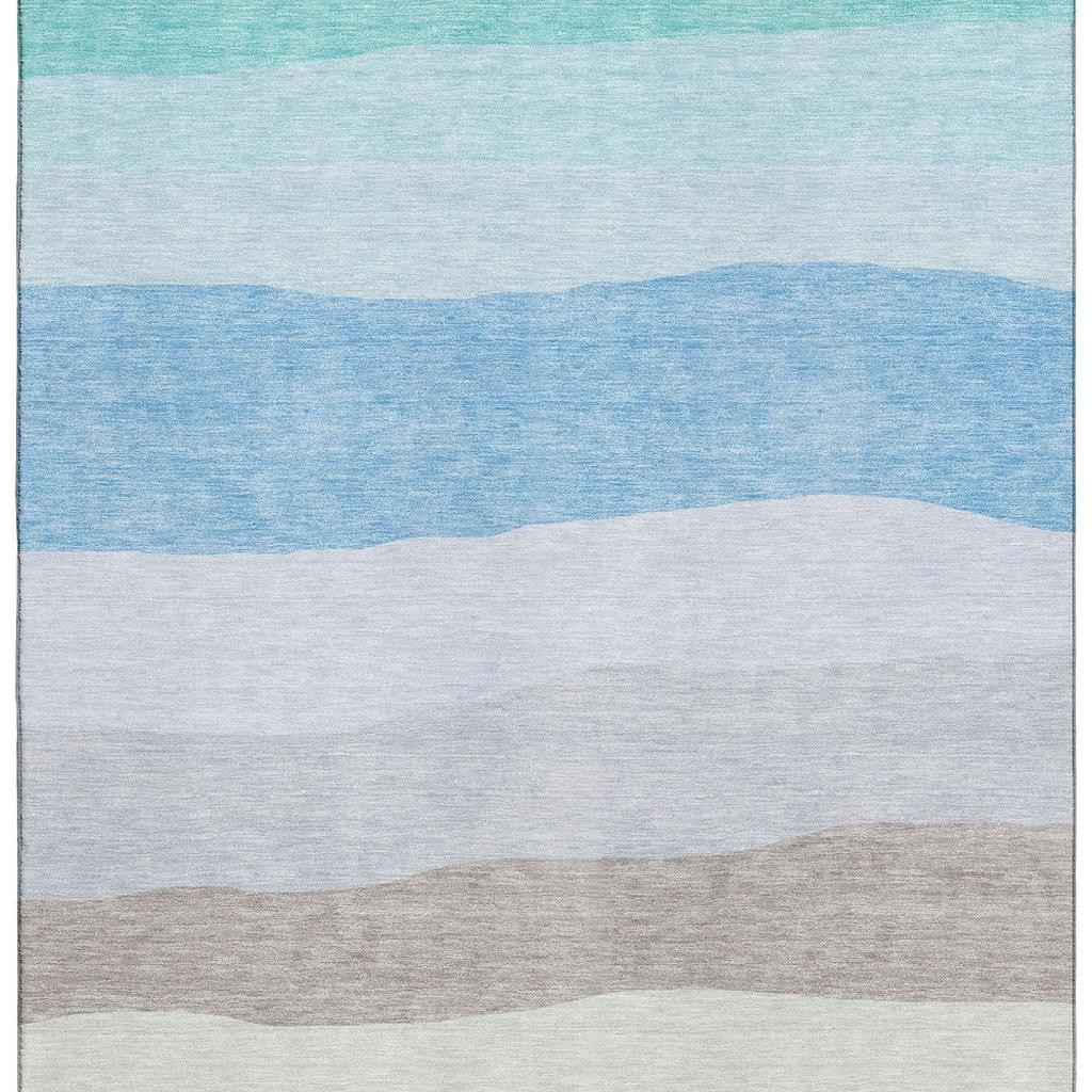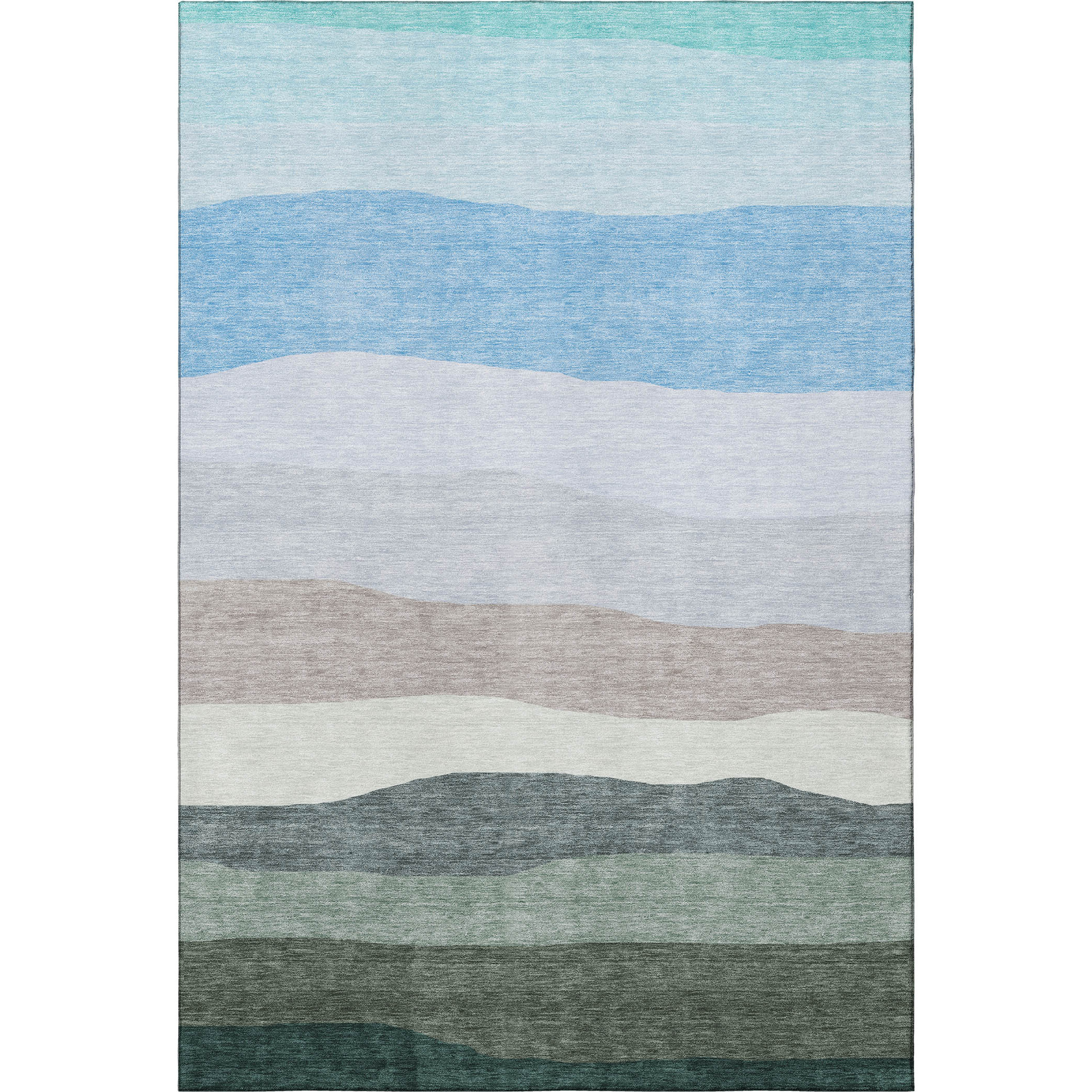 Add some artistry to your room with this 5-foot x 8-foot green and blue striped washable area rug with uv protection. Ideal for spaces with kids and pets, this rug is stain resistant to help repel dirt and spilled liquids. Built to last, this rug crafted from polyester fibers is known for its durability and long lasting appeal. Rugs are a great way to showcase your style, hide imperfections, warm your home and reduce noise. This larger sized, transitional styled rug is ready to create a focal point or statement piece in your room. 60.00-inch h x 90.00-inch w x 0.39-inch d.