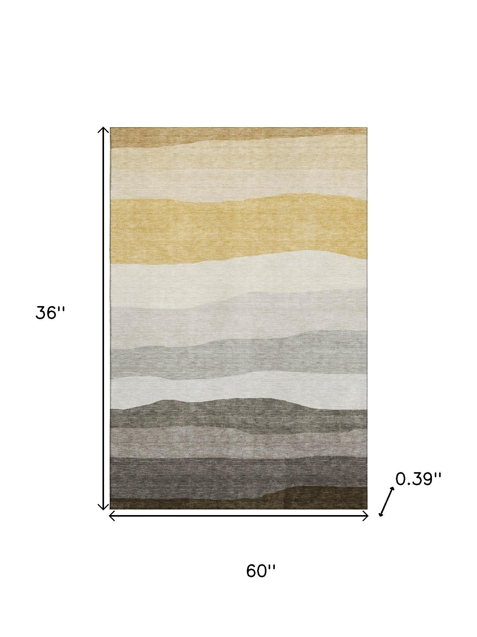 Set an inviting tone in your space with this 3-foot x 5-foot pewter and ivory striped washable area rug with uv protection. Ideal for spaces with kids and pets, this rug is stain resistant to help repel dirt and spilled liquids. Built to last, this rug crafted from polyester fibers is known for its durability and long lasting appeal. Rugs are a great way to showcase your style, hide imperfections, warm your home and reduce noise. This smaller sized, transitional styled rug is just what you need for your walkway, bedside, in front of door, cabinet, refrigerator, or chair. 36.00-inch h x 60.00-inch w x 0.39-inch d.
