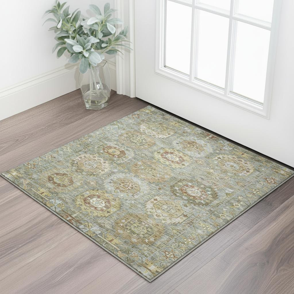 Add some artistry to your room with this 3-foot x 5-foot sage and beige medallion washable area rug with uv protection. Ideal for spaces with kids and pets, this rug is stain resistant to help repel dirt and spilled liquids. Built to last, this rug crafted from polyester fibers is known for its durability and long lasting appeal. Rugs are a great way to showcase your style, hide imperfections, warm your home and reduce noise. This smaller sized, traditional styled rug is just what you need for your walkway, bedside, in front of door, cabinet, refrigerator, or chair. 36.00-inch h x 60.00-inch w x 0.39-inch d.