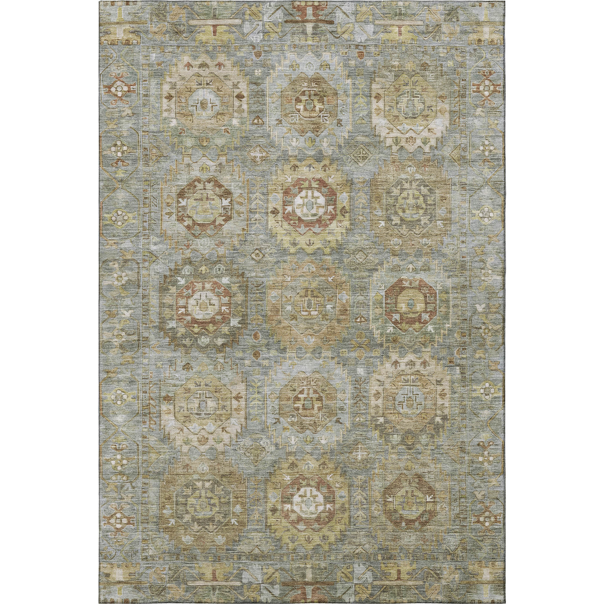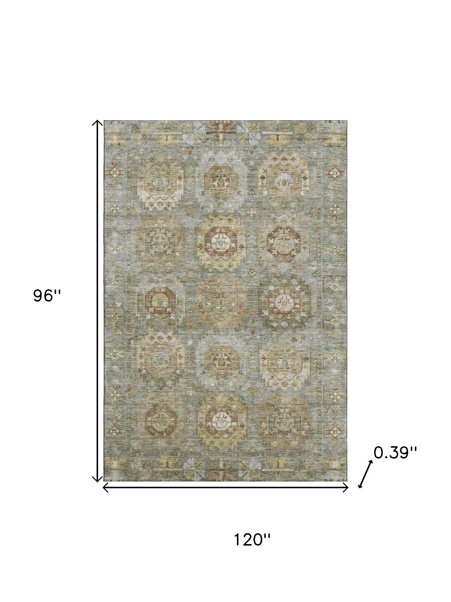 This 8-foot x 10-foot sage and beige medallion washable area rug with uv protection, is a great way to add warmth to a room. Ideal for spaces with kids and pets, this rug is stain resistant to help repel dirt and spilled liquids. Built to last, this rug crafted from polyester fibers is known for its durability and long lasting appeal. Rugs are a great way to showcase your style, hide imperfections, warm your home and reduce noise. This larger sized, traditional styled rug is ready to create a focal point or statement piece in your room. 96.00-inch h x 120.00-inch w x 0.39-inch d.