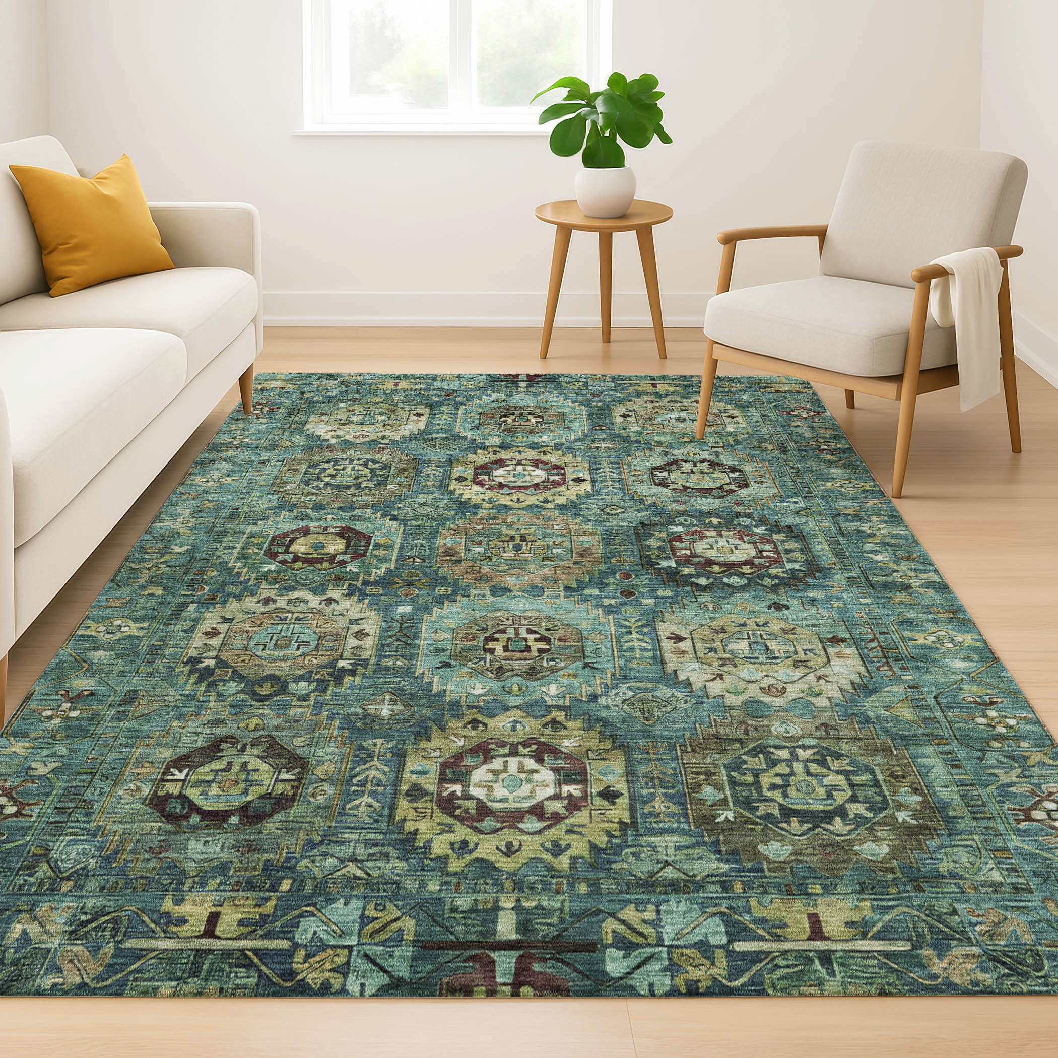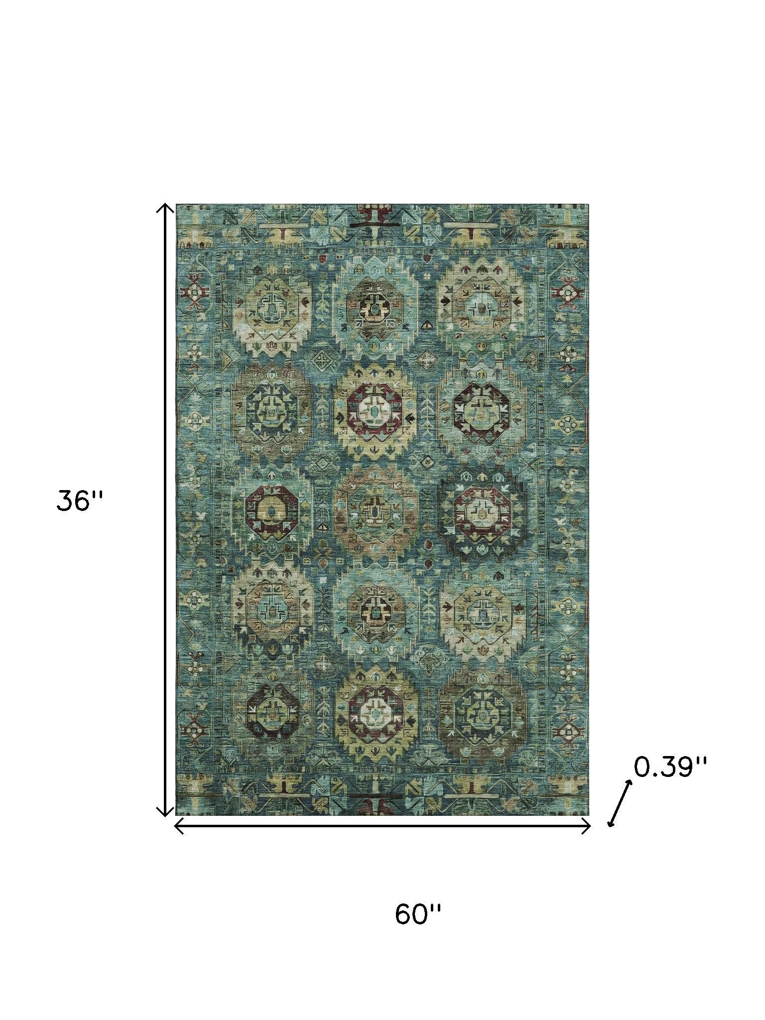 Set an inviting tone in your space with this 3-foot x 5-foot teal and brown medallion washable area rug with uv protection. Ideal for spaces with kids and pets, this rug is stain resistant to help repel dirt and spilled liquids. Built to last, this rug crafted from polyester fibers is known for its durability and long lasting appeal. Rugs are a great way to showcase your style, hide imperfections, warm your home and reduce noise. This smaller sized, traditional styled rug is just what you need for your walkway, bedside, in front of door, cabinet, refrigerator, or chair. 36.00-inch h x 60.00-inch w x 0.39-inch d.