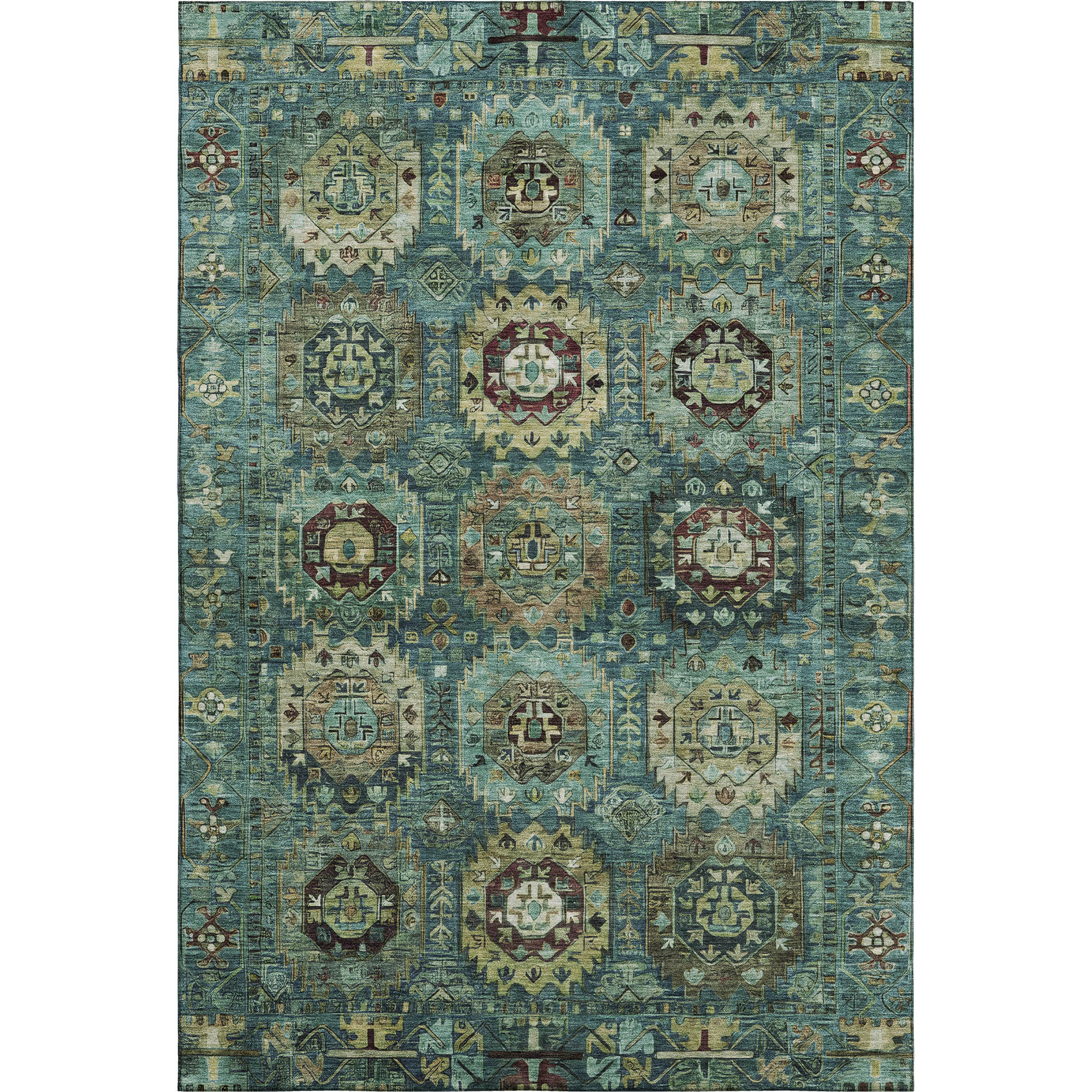 Add great coloration and comfortable texture to your space with this 5-foot x 8-foot teal and brown medallion washable area rug with uv protection. Ideal for spaces with kids and pets, this rug is stain resistant to help repel dirt and spilled liquids. Built to last, this rug crafted from polyester fibers is known for its durability and long lasting appeal. Rugs are a great way to showcase your style, hide imperfections, warm your home and reduce noise. This larger sized, traditional styled rug is ready to create a focal point or statement piece in your room. 60.00-inch h x 90.00-inch w x 0.39-inch d.