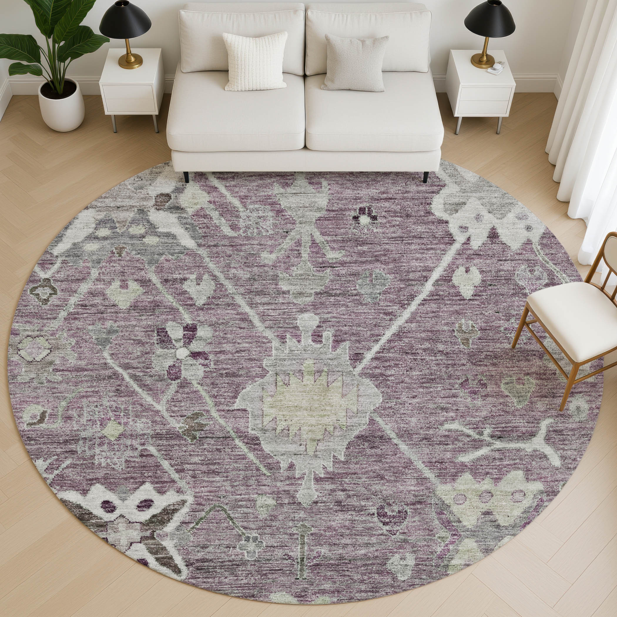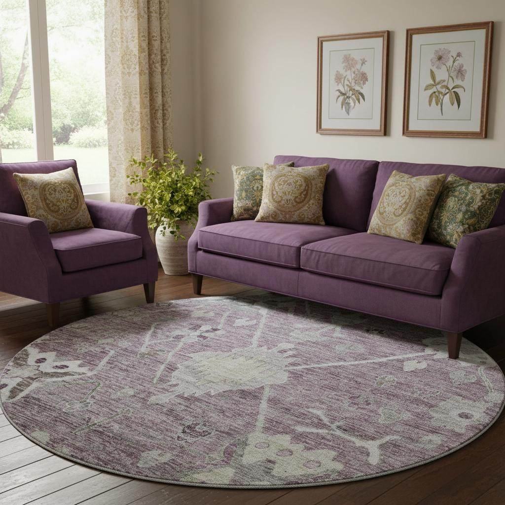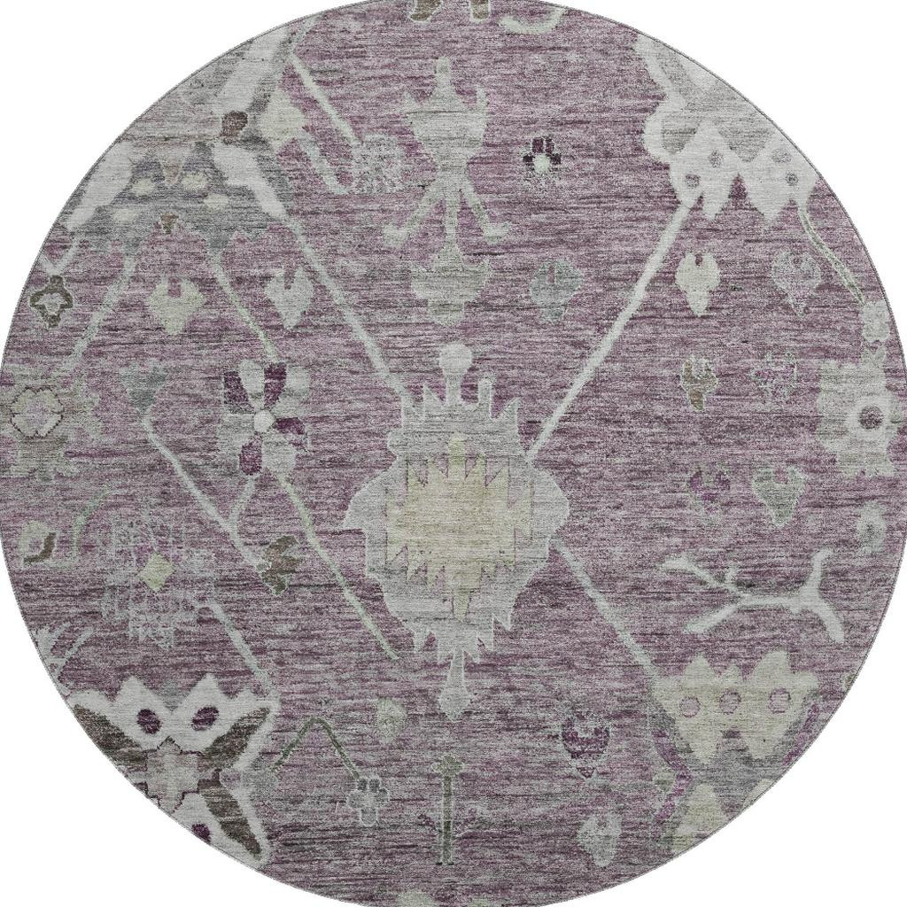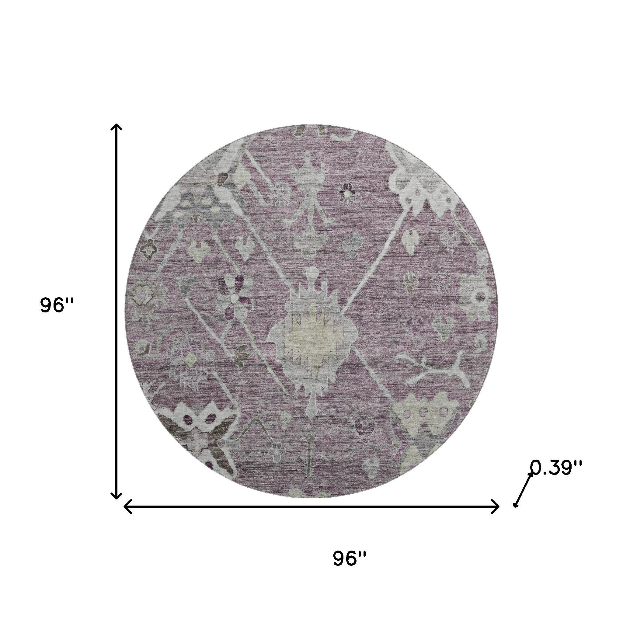 Add some artistry to your room with this 8-foot merlot and gray oriental washable round rug with uv protection. Ideal for spaces with kids and pets, this rug is stain resistant to help repel dirt and spilled liquids. Built to last, this rug crafted from polyester fibers is known for its durability and long lasting appeal. Rugs are a great way to showcase your style, hide imperfections, warm your home and reduce noise. This larger sized, traditional styled rug is ready to create a focal point or statement piece in your room. 96.00-inch h x 96.00-inch w x 0.39-inch d.