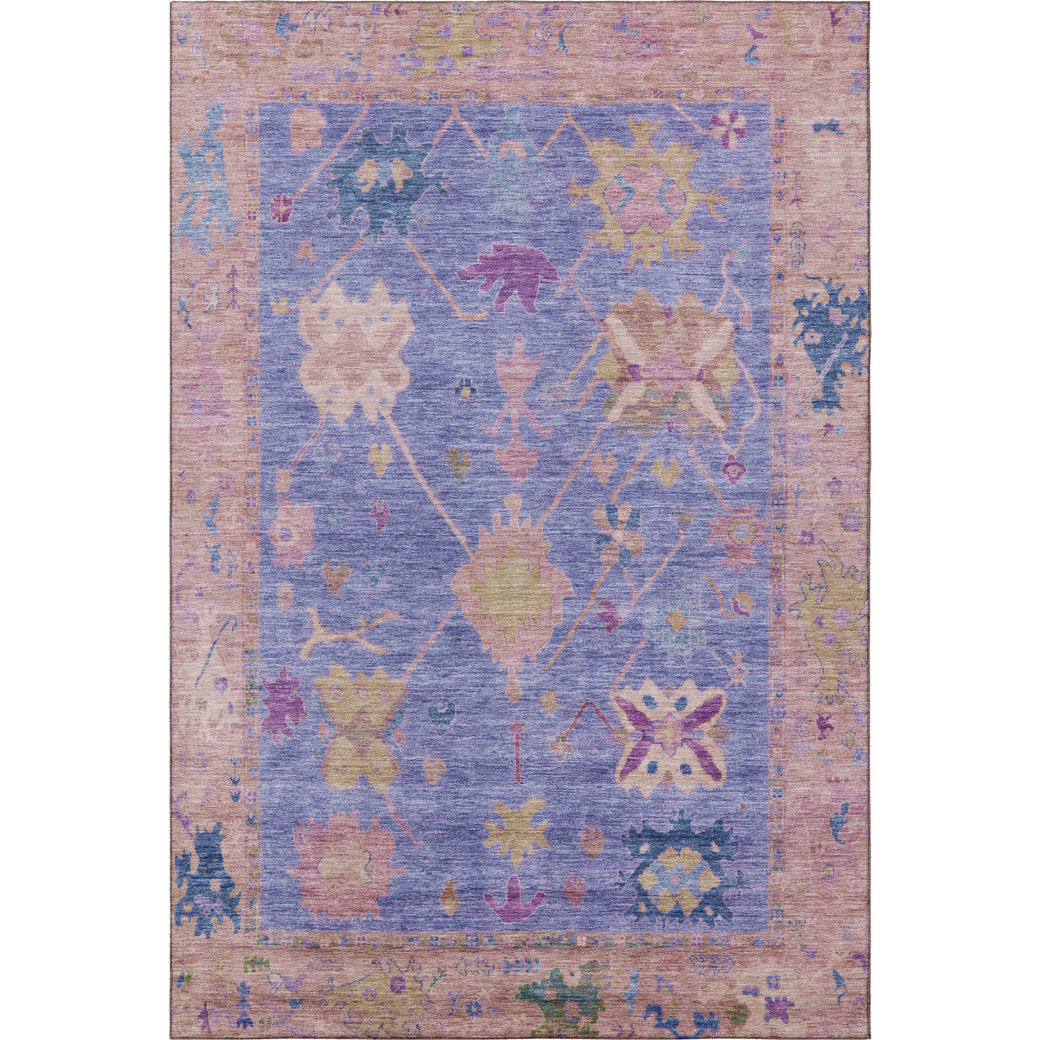 Set an inviting tone in your space with this 5-foot x 8-foot purple and blue oriental washable area rug with uv protection. Ideal for spaces with kids and pets, this rug is stain resistant to help repel dirt and spilled liquids. Built to last, this rug crafted from polyester fibers is known for its durability and long lasting appeal. Rugs are a great way to showcase your style, hide imperfections, warm your home and reduce noise. This larger sized, traditional styled rug is ready to create a focal point or statement piece in your room. 60.00-inch h x 90.00-inch w x 0.39-inch d.