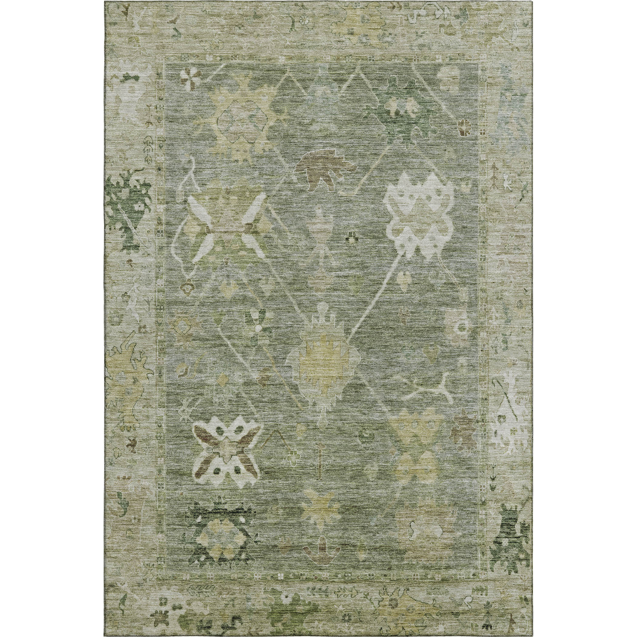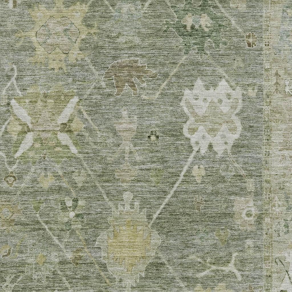 This 9-foot x 12-foot sage and beige oriental washable area rug with uv protection, is a great way to add warmth to a room. Ideal for spaces with kids and pets, this rug is stain resistant to help repel dirt and spilled liquids. Built to last, this rug crafted from polyester fibers is known for its durability and long lasting appeal. Rugs are a great way to showcase your style, hide imperfections, warm your home and reduce noise. This larger sized, traditional styled rug is ready to create a focal point or statement piece in your room. 108.00-inch h x 144.00-inch w x 0.39-inch d.