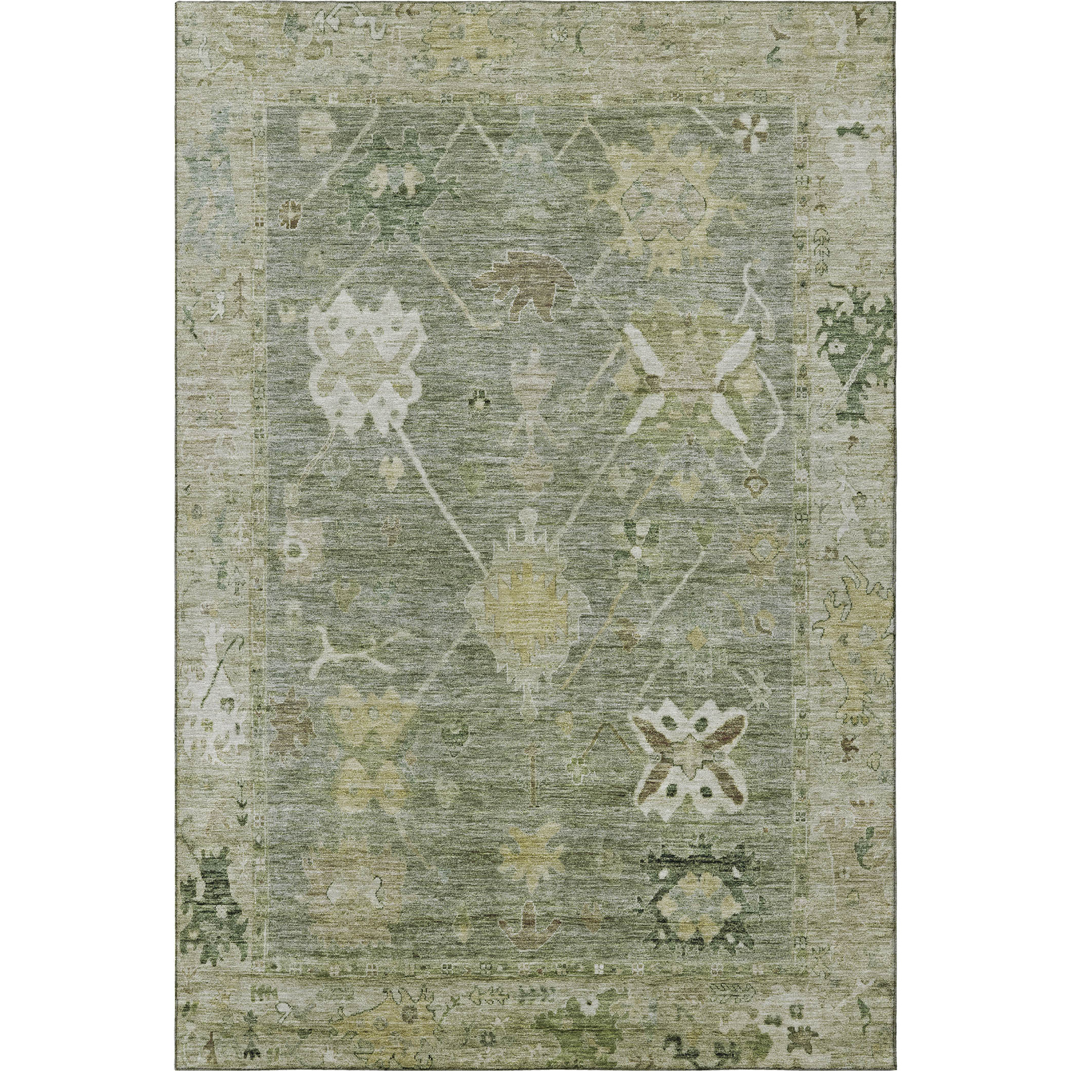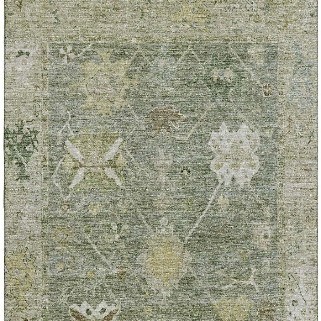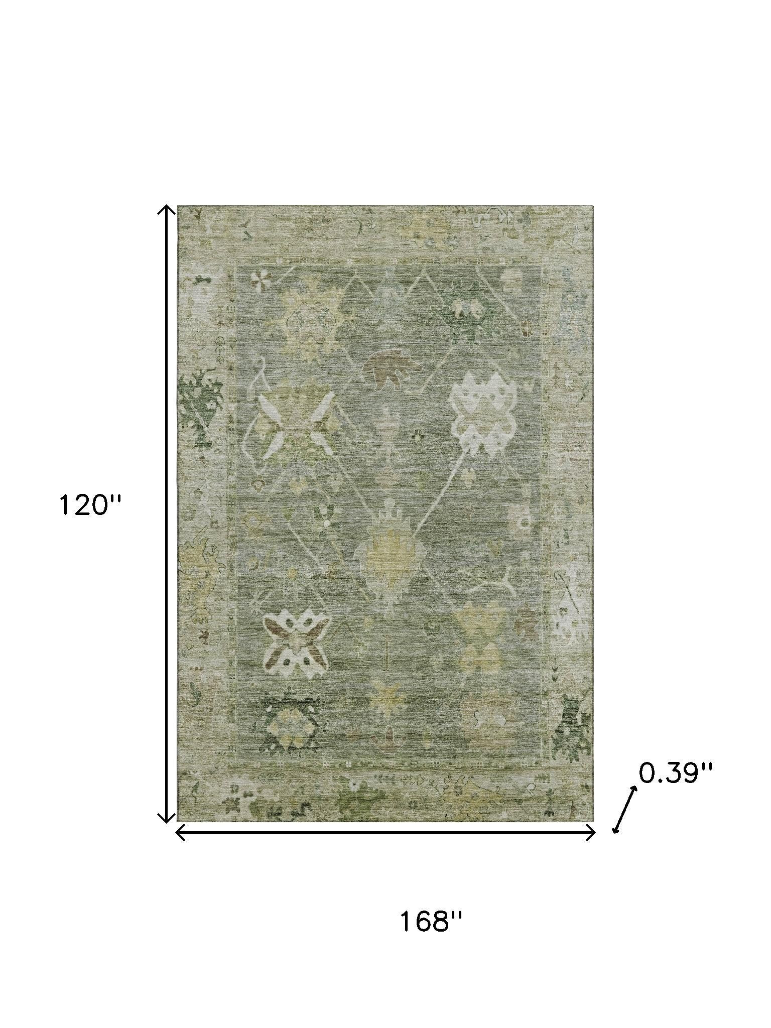 Add great coloration and comfortable texture to your space with this 10-foot x 14-foot sage and beige oriental washable area rug with uv protection. Ideal for spaces with kids and pets, this rug is stain resistant to help repel dirt and spilled liquids. Built to last, this rug crafted from polyester fibers is known for its durability and long lasting appeal. Rugs are a great way to showcase your style, hide imperfections, warm your home and reduce noise. This larger sized, traditional styled rug is ready to create a focal point or statement piece in your room. 120.00-inch h x 168.00-inch w x 0.39-inch d.