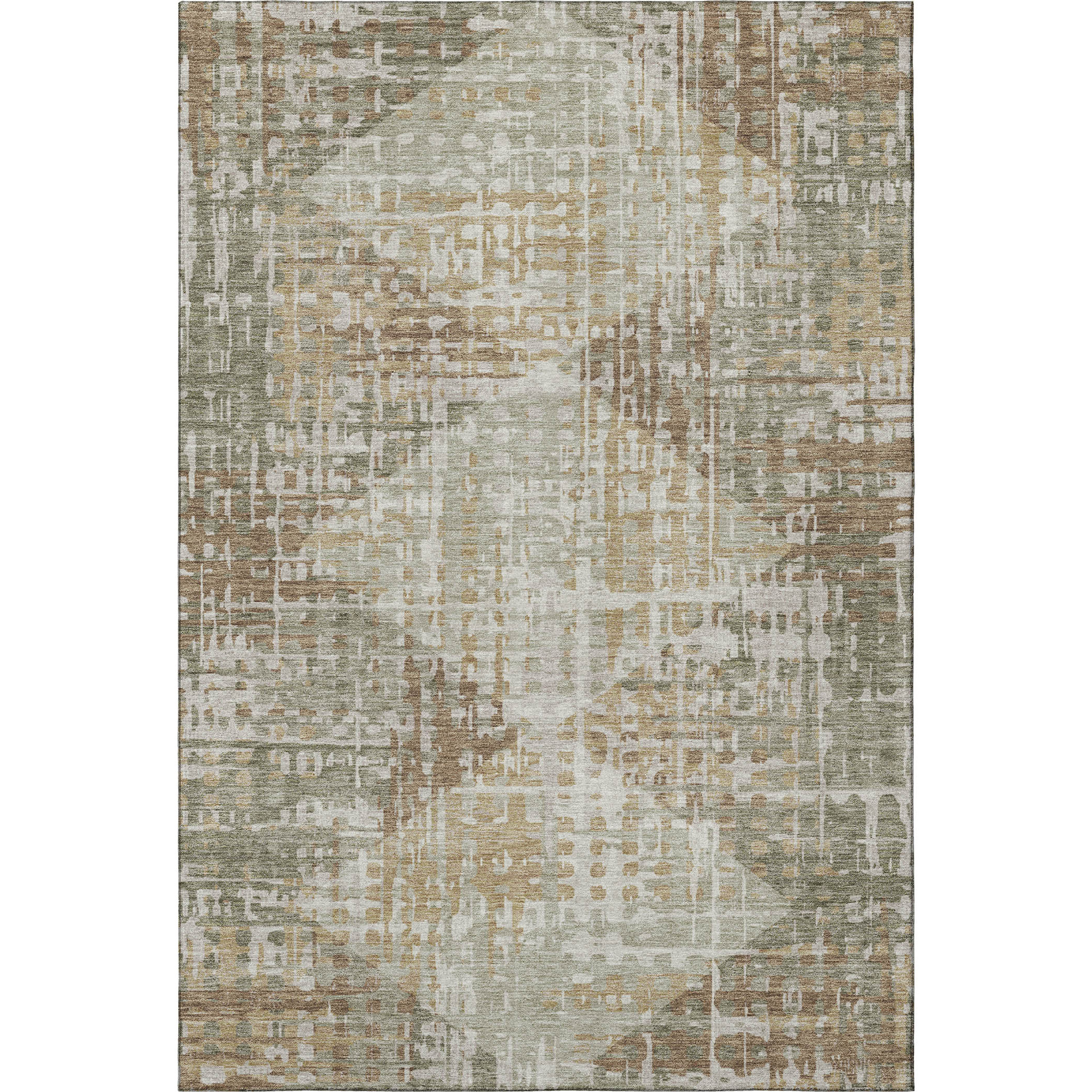 Add great coloration and comfortable texture to your space with this 5-foot x 8-foot sage and beige geometric washable area rug with uv protection. Ideal for spaces with kids and pets, this rug is stain resistant to help repel dirt and spilled liquids. Built to last, this rug crafted from polyester fibers is known for its durability and long lasting appeal. Rugs are a great way to showcase your style, hide imperfections, warm your home and reduce noise. This larger sized, transitional styled rug is ready to create a focal point or statement piece in your room. 60.00-inch h x 90.00-inch w x 0.39-inch d.