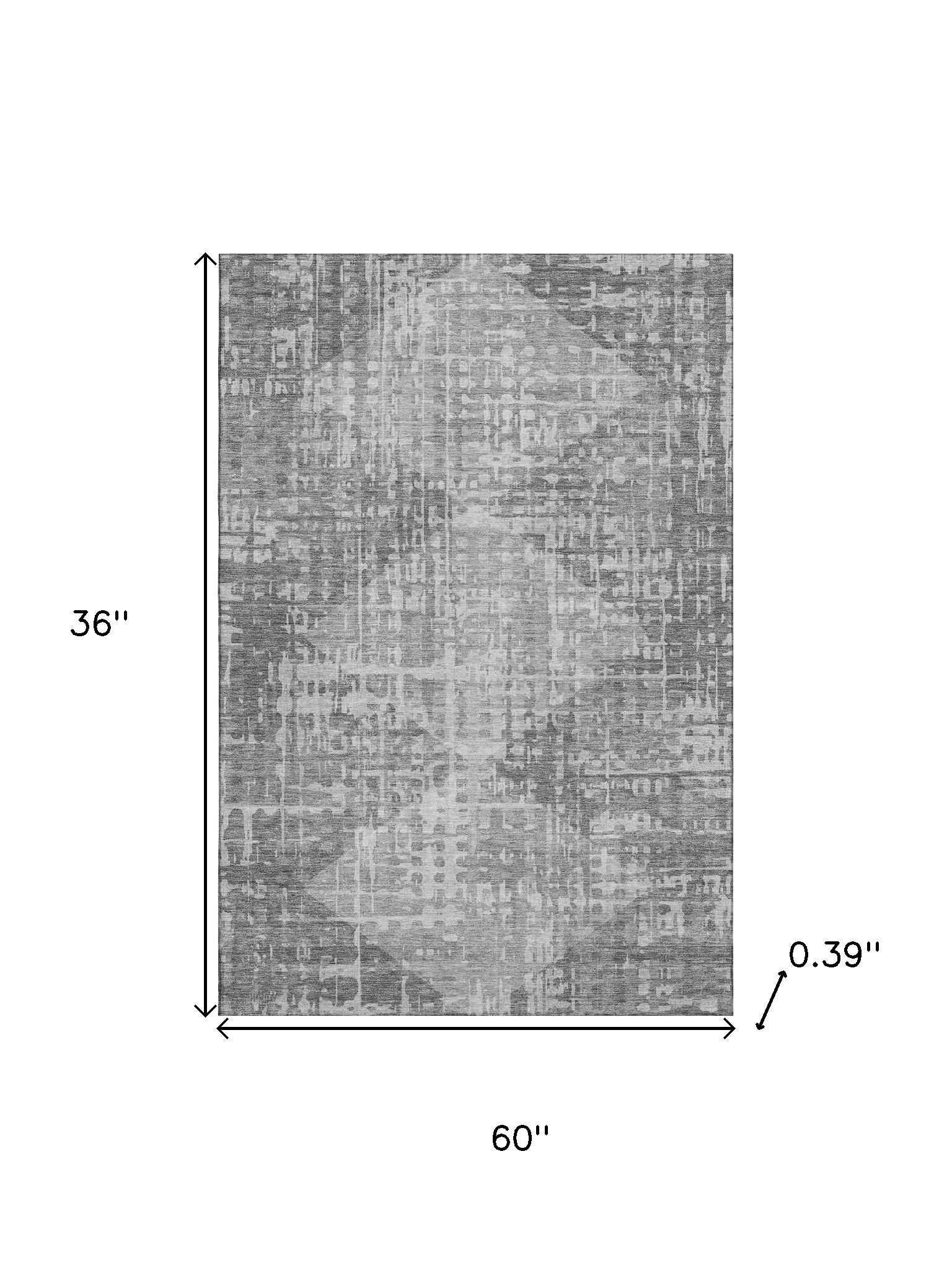 This 3-foot x 5-foot gray and silver geometric washable area rug with uv protection, is a great way to add warmth to a room. Ideal for spaces with kids and pets, this rug is stain resistant to help repel dirt and spilled liquids. Built to last, this rug crafted from polyester fibers is known for its durability and long lasting appeal. Rugs are a great way to showcase your style, hide imperfections, warm your home and reduce noise. This smaller sized, transitional styled rug is just what you need for your walkway, bedside, in front of door, cabinet, refrigerator, or chair. 36.00-inch h x 60.00-inch w x 0.39-inch d.