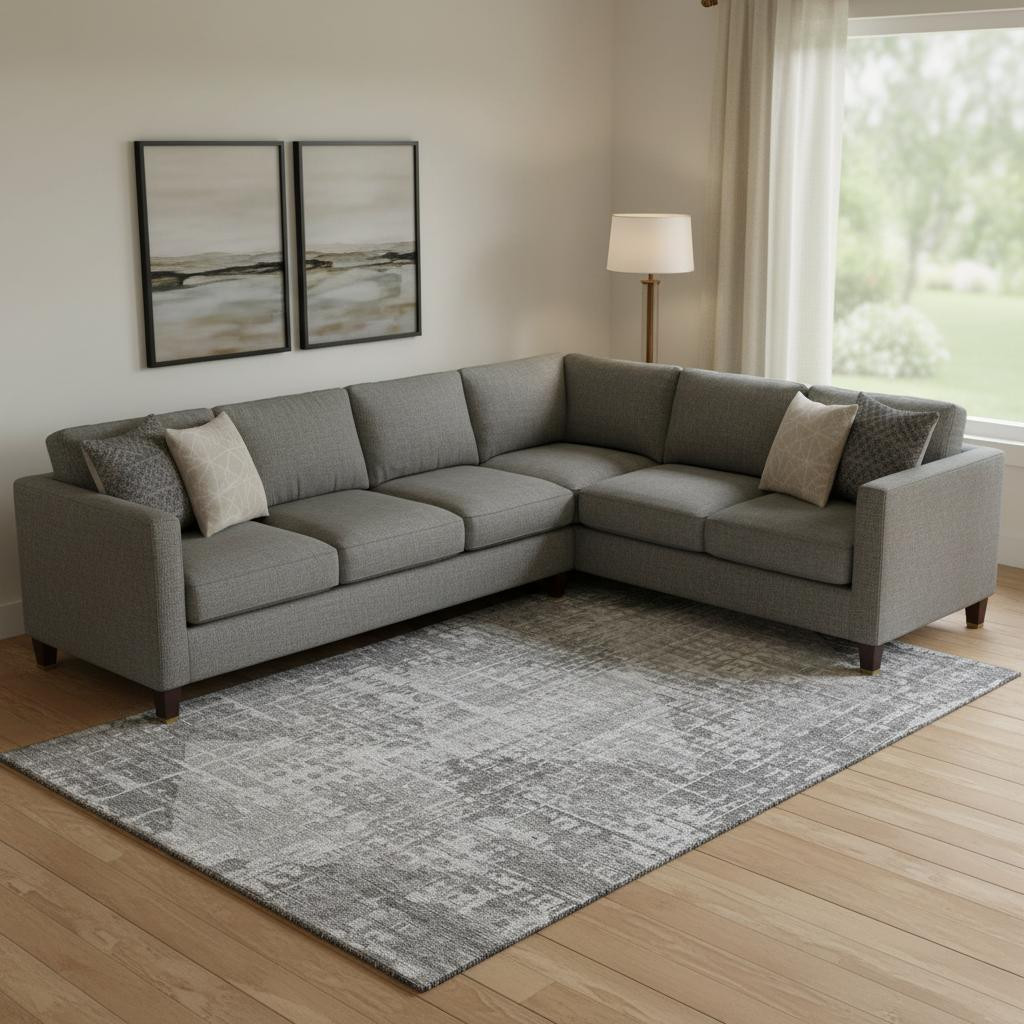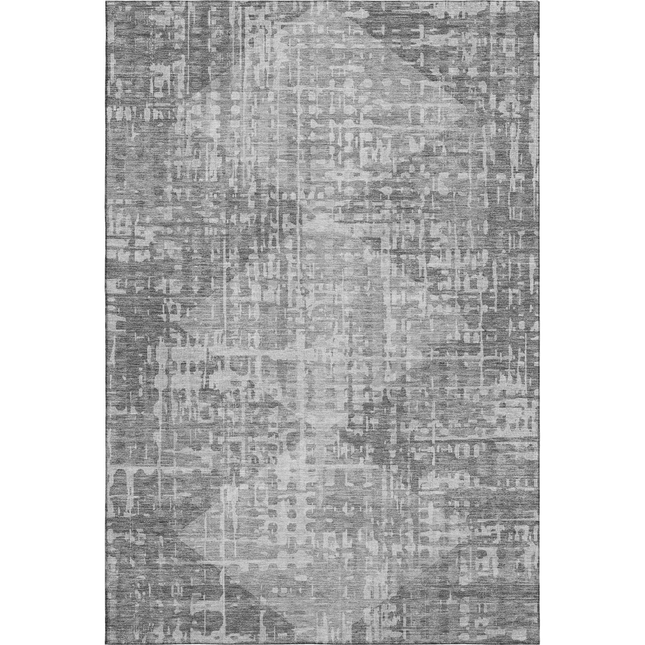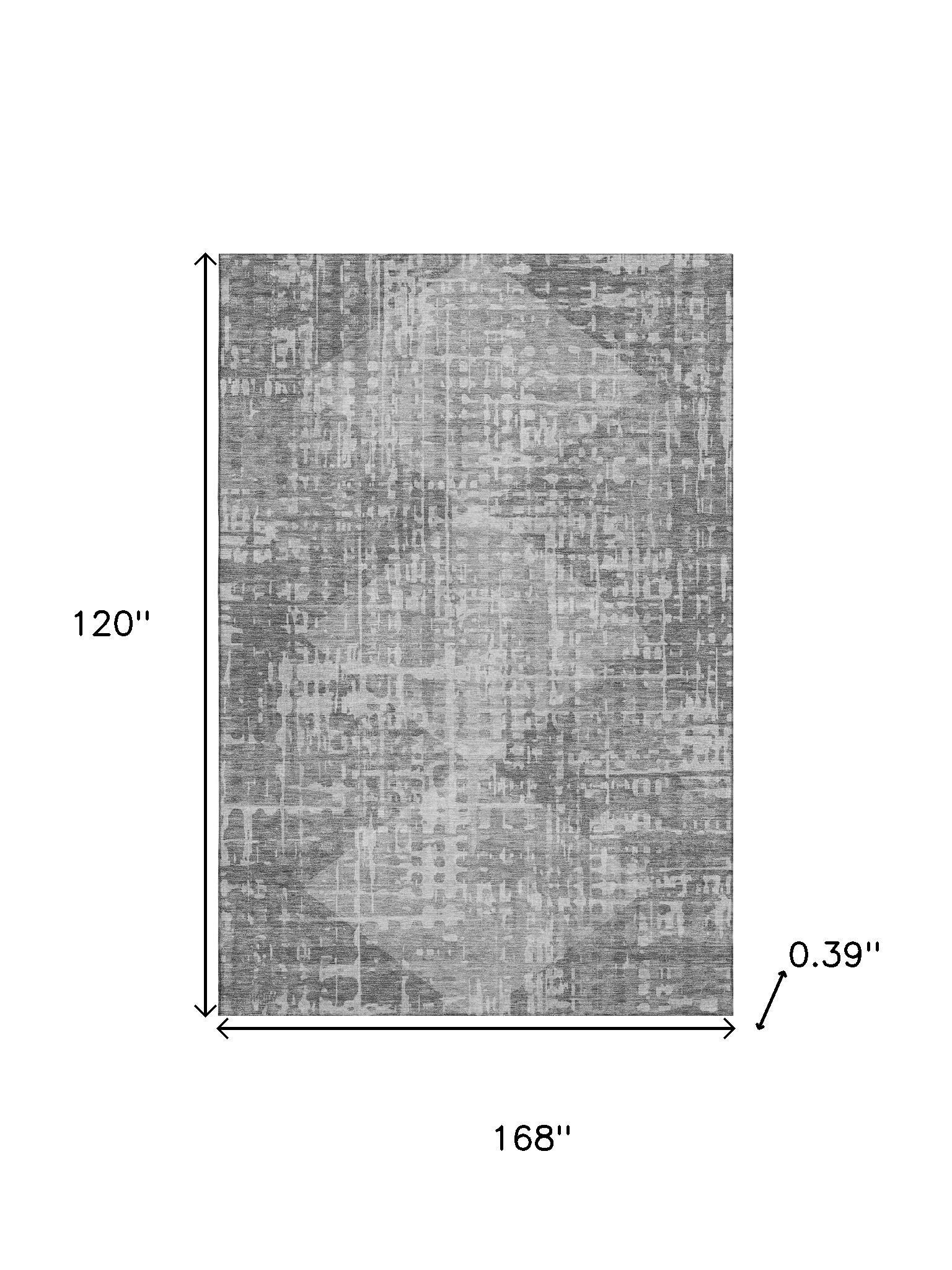 This 10-foot x 14-foot gray and silver geometric washable area rug with uv protection, is a great way to add warmth to a room. Ideal for spaces with kids and pets, this rug is stain resistant to help repel dirt and spilled liquids. Built to last, this rug crafted from polyester fibers is known for its durability and long lasting appeal. Rugs are a great way to showcase your style, hide imperfections, warm your home and reduce noise. This larger sized, transitional styled rug is ready to create a focal point or statement piece in your room. 120.00-inch h x 168.00-inch w x 0.39-inch d.