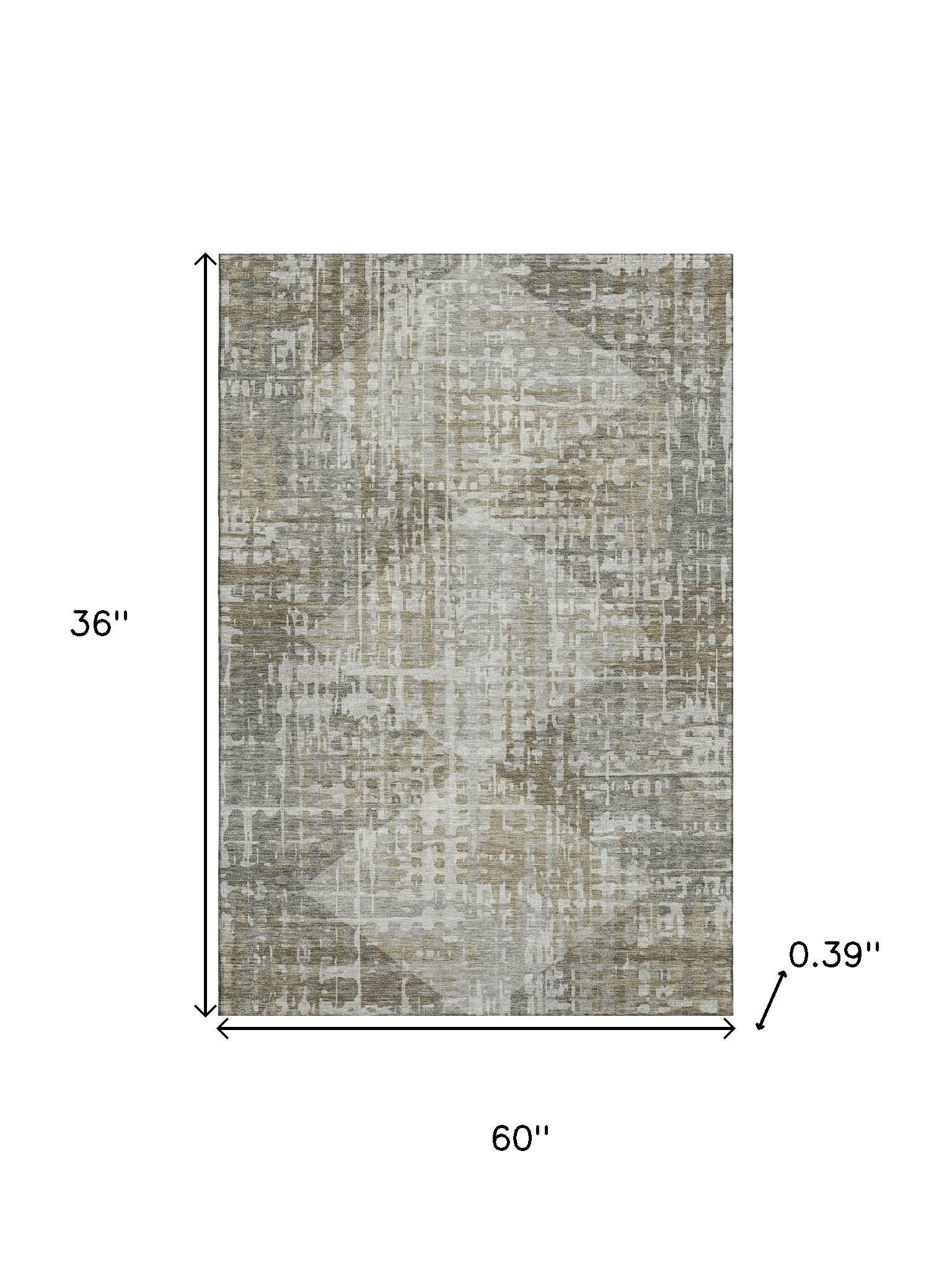 Add some artistry to your room with this 3-foot x 5-foot pewter and gray geometric washable area rug with uv protection. Ideal for spaces with kids and pets, this rug is stain resistant to help repel dirt and spilled liquids. Built to last, this rug crafted from polyester fibers is known for its durability and long lasting appeal. Rugs are a great way to showcase your style, hide imperfections, warm your home and reduce noise. This smaller sized, transitional styled rug is just what you need for your walkway, bedside, in front of door, cabinet, refrigerator, or chair. 36.00-inch h x 60.00-inch w x 0.39-inch d.