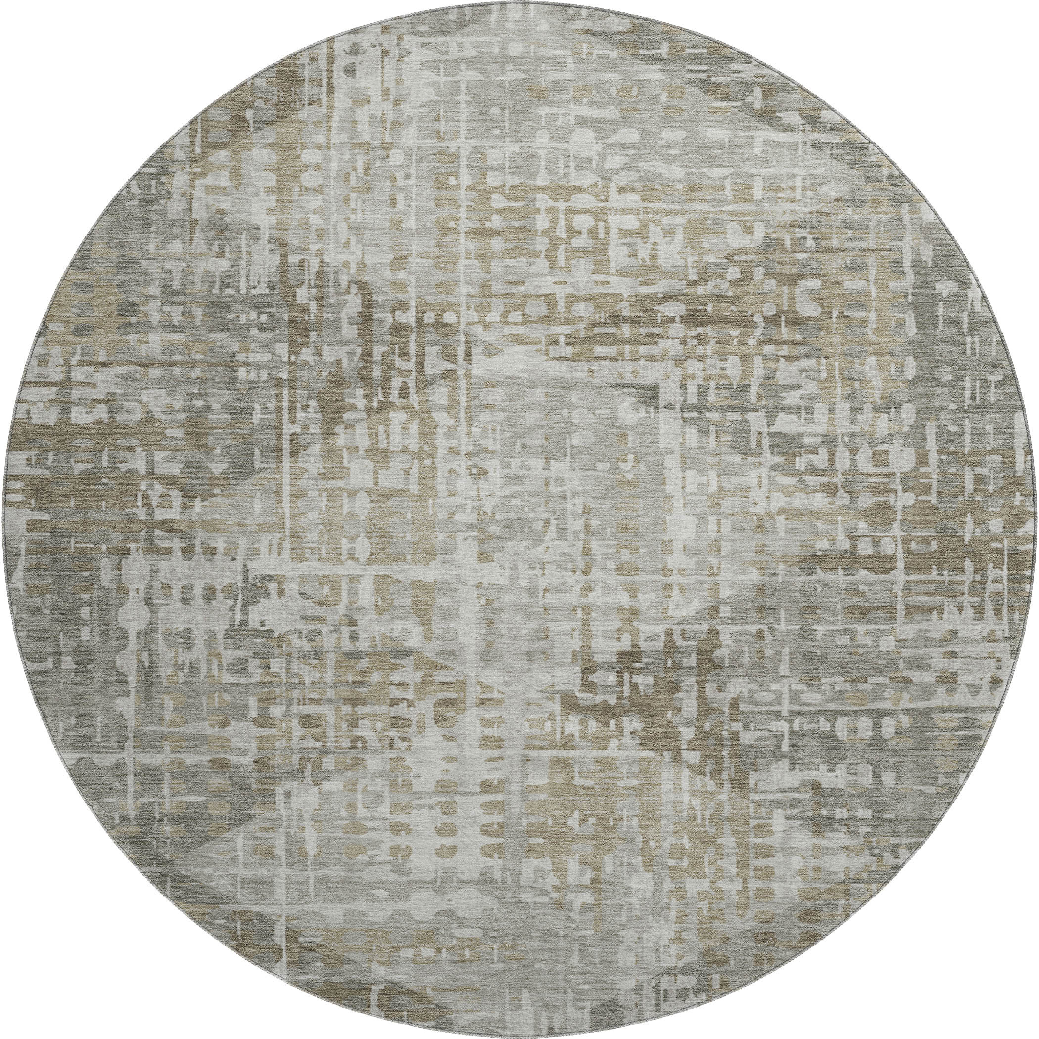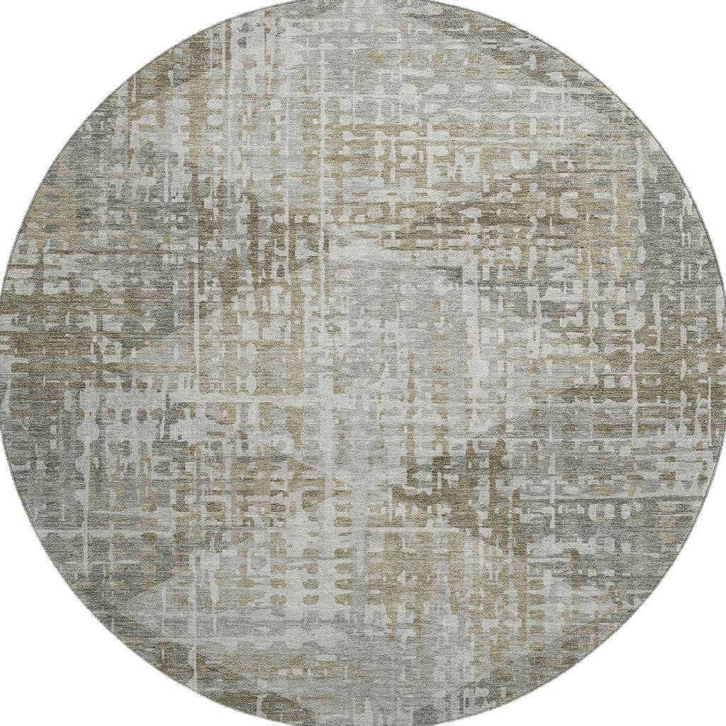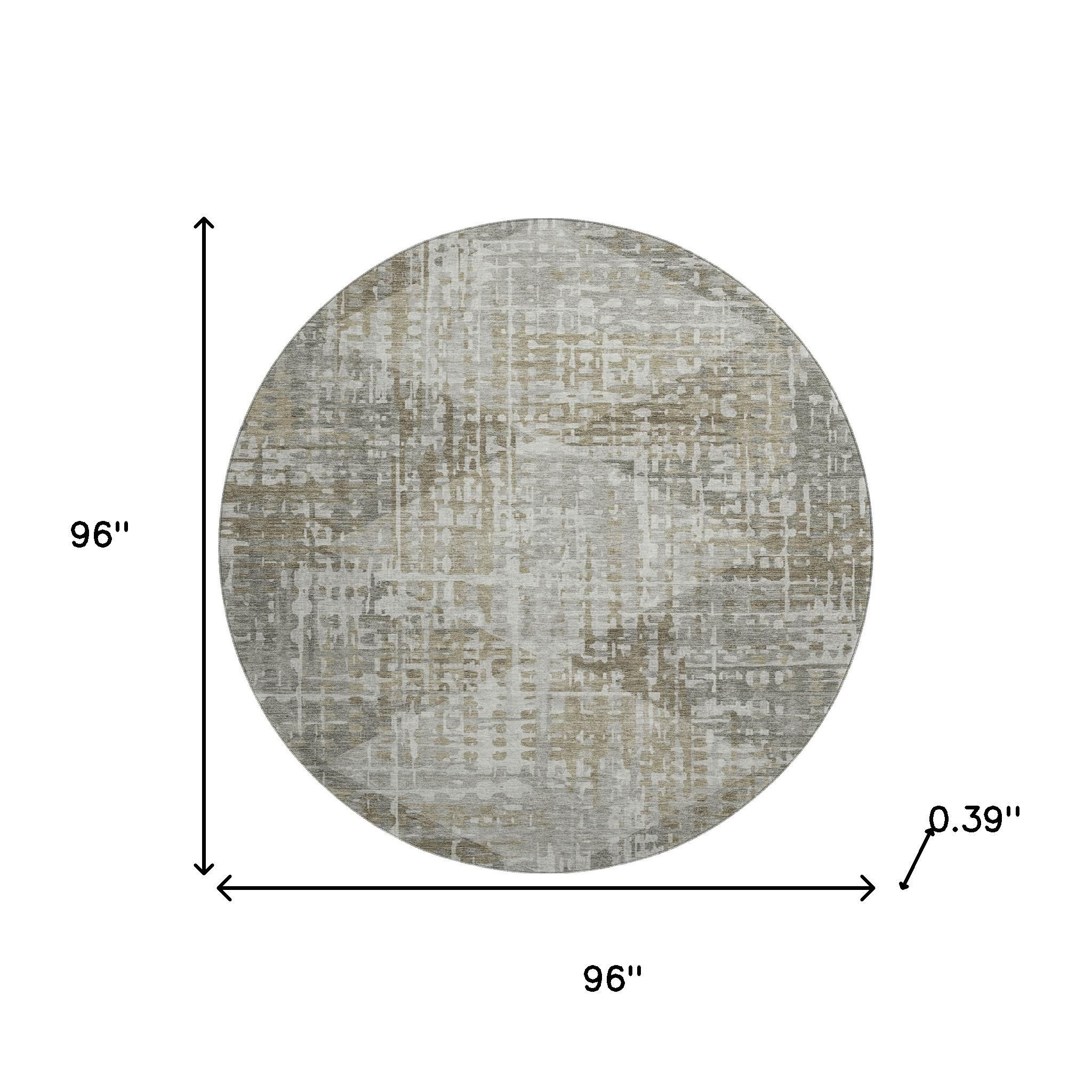 Add some artistry to your room with this 8-foot pewter and gray geometric washable round rug with uv protection. Ideal for spaces with kids and pets, this rug is stain resistant to help repel dirt and spilled liquids. Built to last, this rug crafted from polyester fibers is known for its durability and long lasting appeal. Rugs are a great way to showcase your style, hide imperfections, warm your home and reduce noise. This larger sized, transitional styled rug is ready to create a focal point or statement piece in your room. 96.00-inch h x 96.00-inch w x 0.39-inch d.