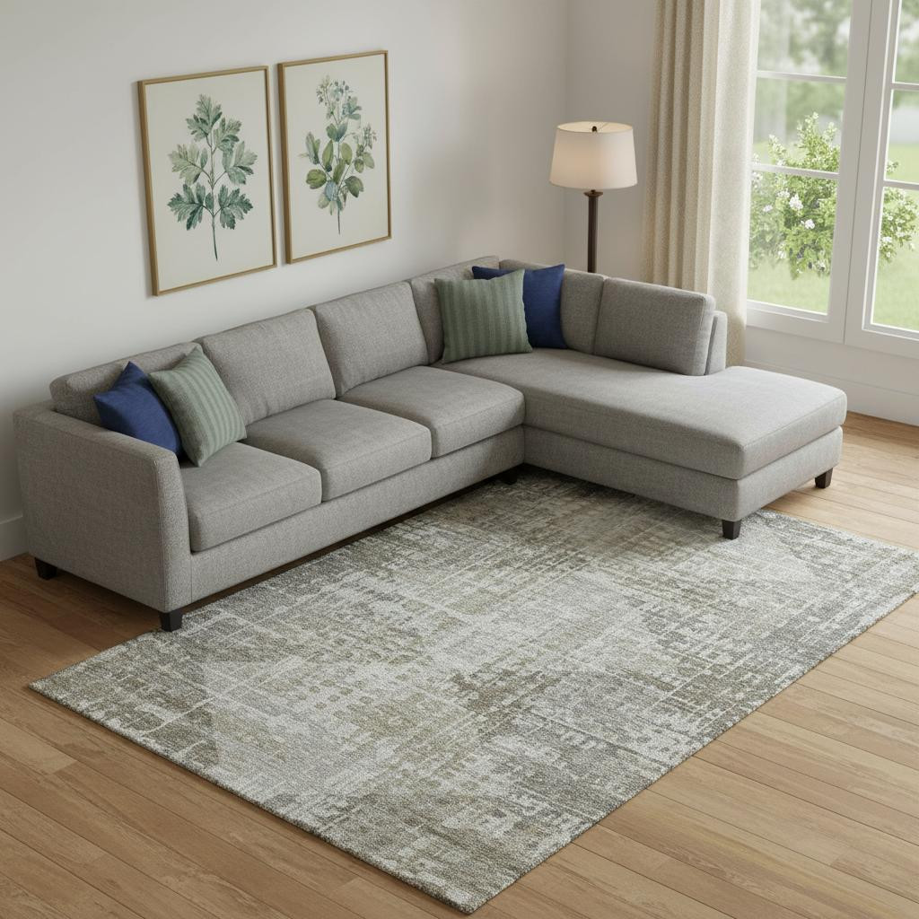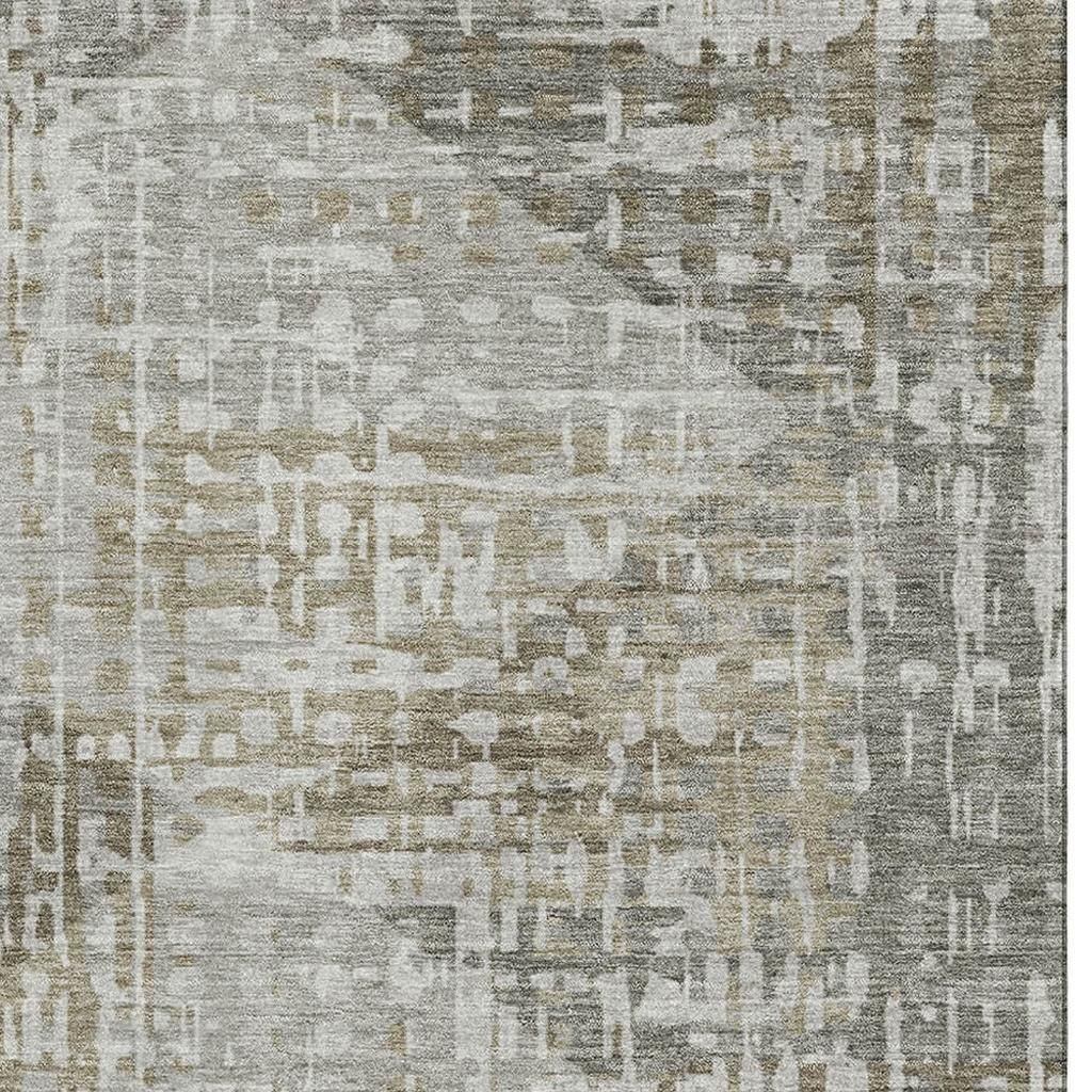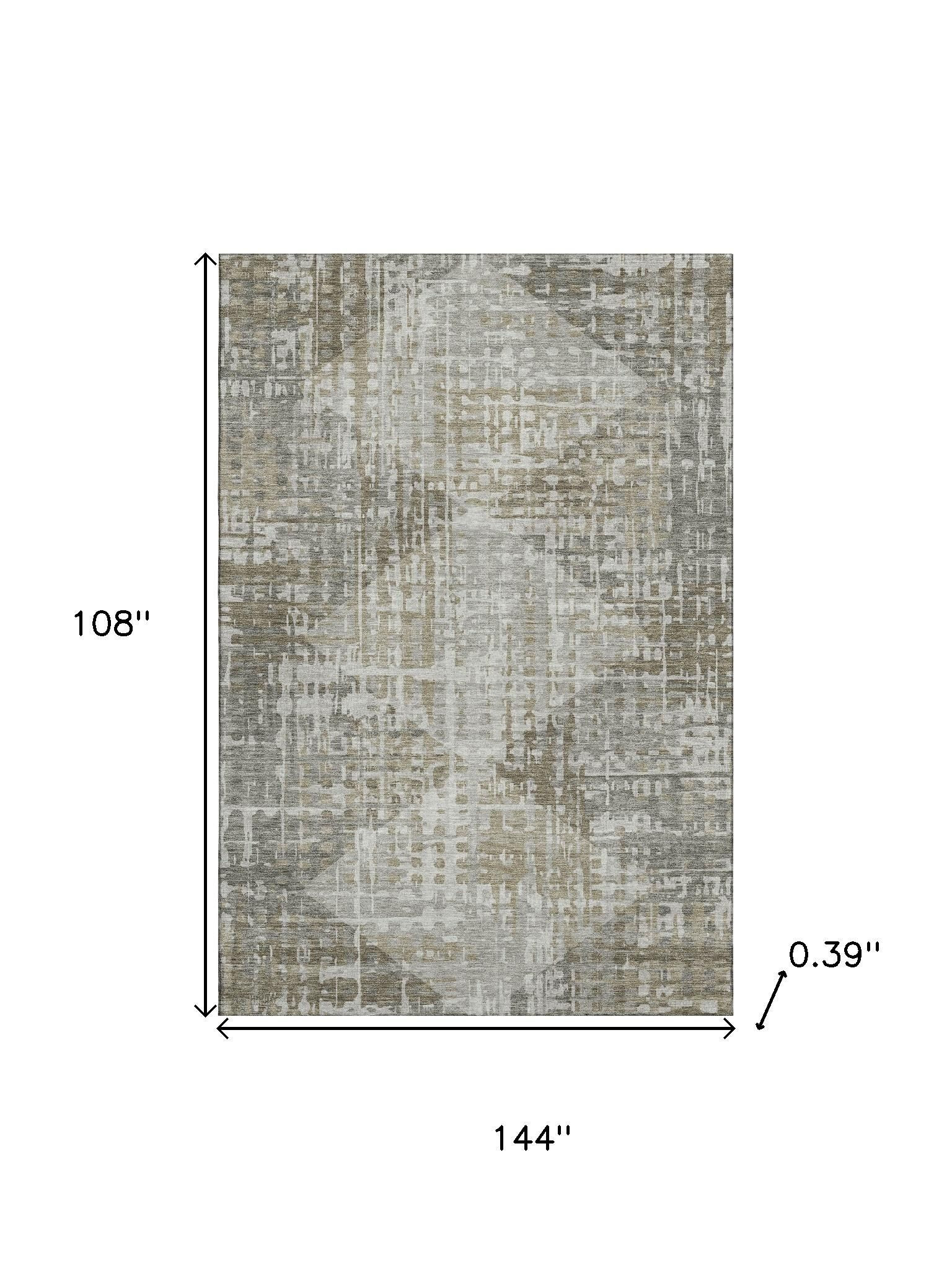 Add some artistry to your room with this 9-foot x 12-foot pewter and gray geometric washable area rug with uv protection. Ideal for spaces with kids and pets, this rug is stain resistant to help repel dirt and spilled liquids. Built to last, this rug crafted from polyester fibers is known for its durability and long lasting appeal. Rugs are a great way to showcase your style, hide imperfections, warm your home and reduce noise. This larger sized, transitional styled rug is ready to create a focal point or statement piece in your room. 108.00-inch h x 144.00-inch w x 0.39-inch d.
