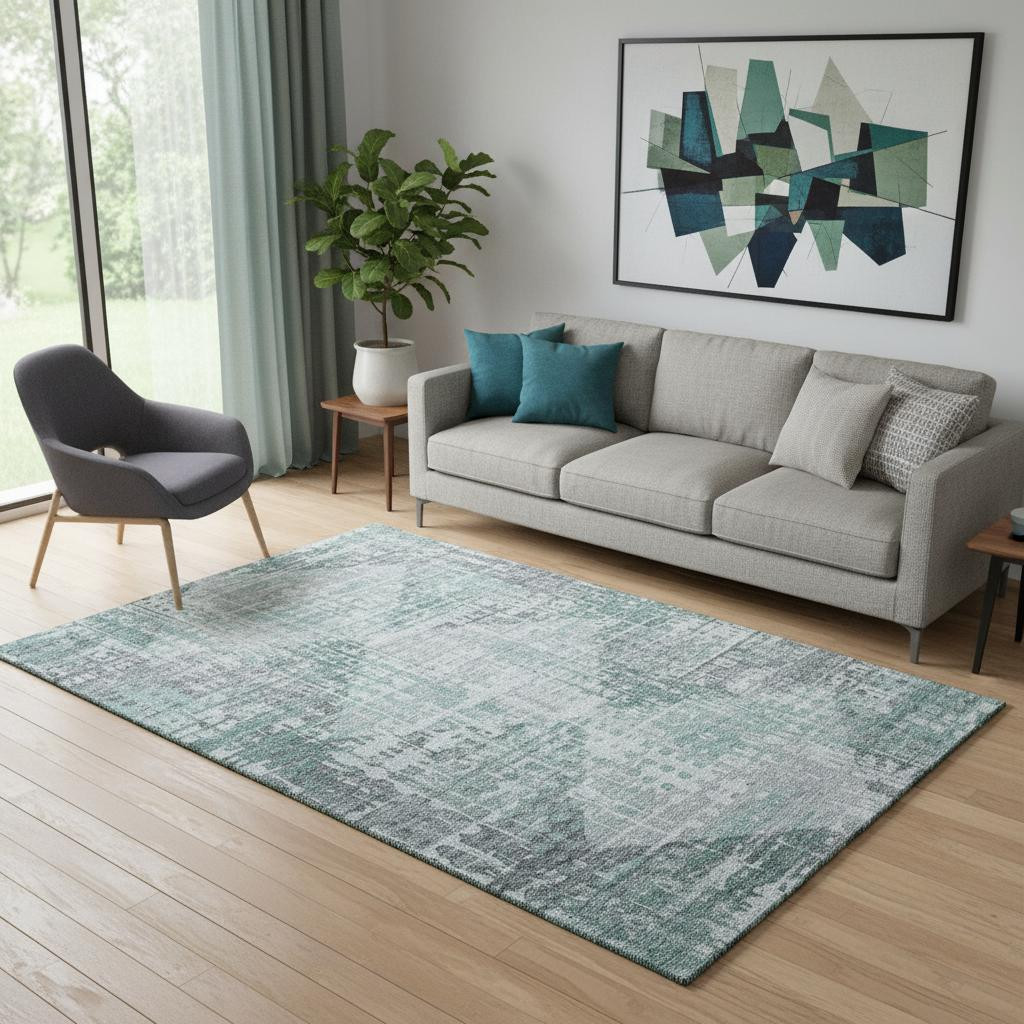 Add some artistry to your room with this 5-foot x 8-foot teal and gray geometric washable area rug with uv protection. Ideal for spaces with kids and pets, this rug is stain resistant to help repel dirt and spilled liquids. Built to last, this rug crafted from polyester fibers is known for its durability and long lasting appeal. Rugs are a great way to showcase your style, hide imperfections, warm your home and reduce noise. This larger sized, transitional styled rug is ready to create a focal point or statement piece in your room. 60.00-inch h x 90.00-inch w x 0.39-inch d.