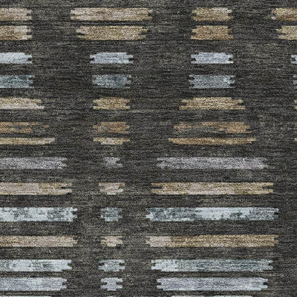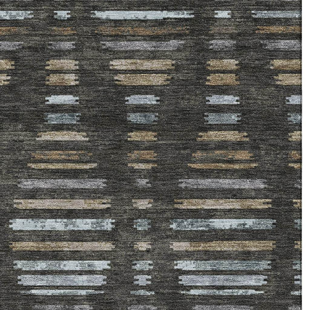 Add great coloration and comfortable texture to your space with this 10-foot x 14-foot coffee and gray striped washable area rug with uv protection. Ideal for spaces with kids and pets, this rug is stain resistant to help repel dirt and spilled liquids. Built to last, this rug crafted from polyester fibers is known for its durability and long lasting appeal. Rugs are a great way to showcase your style, hide imperfections, warm your home and reduce noise. This larger sized, transitional styled rug is ready to create a focal point or statement piece in your room. 120.00-inch h x 168.00-inch w x 0.39-inch d.