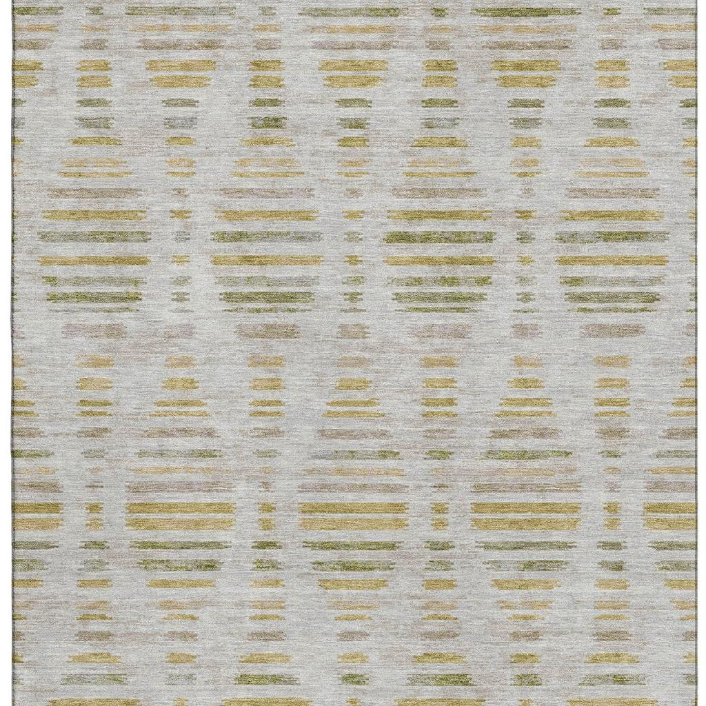 Add great coloration and comfortable texture to your space with this 3-foot x 5-foot ivory and gold striped washable area rug with uv protection. Ideal for spaces with kids and pets, this rug is stain resistant to help repel dirt and spilled liquids. Built to last, this rug crafted from polyester fibers is known for its durability and long lasting appeal. Rugs are a great way to showcase your style, hide imperfections, warm your home and reduce noise. This smaller sized, transitional styled rug is just what you need for your walkway, bedside, in front of door, cabinet, refrigerator, or chair. 36.00-inch h x 60.00-inch w x 0.39-inch d.