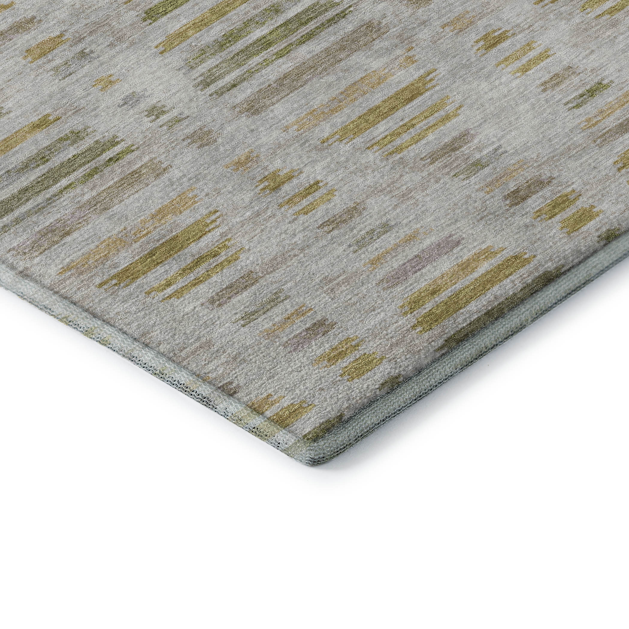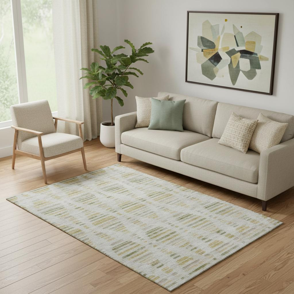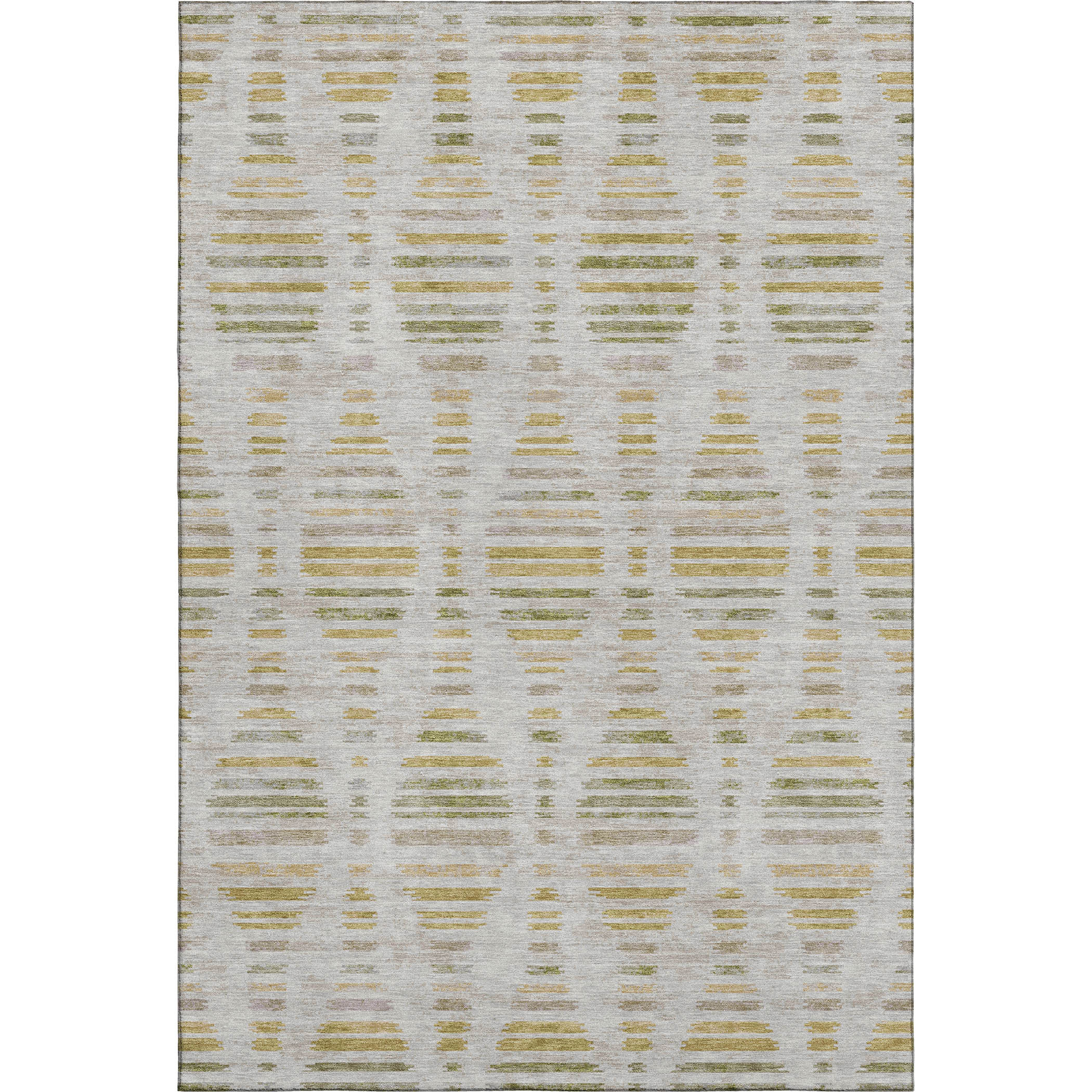 Set an inviting tone in your space with this 5-foot x 8-foot ivory and gold striped washable area rug with uv protection. Ideal for spaces with kids and pets, this rug is stain resistant to help repel dirt and spilled liquids. Built to last, this rug crafted from polyester fibers is known for its durability and long lasting appeal. Rugs are a great way to showcase your style, hide imperfections, warm your home and reduce noise. This larger sized, transitional styled rug is ready to create a focal point or statement piece in your room. 60.00-inch h x 90.00-inch w x 0.39-inch d.