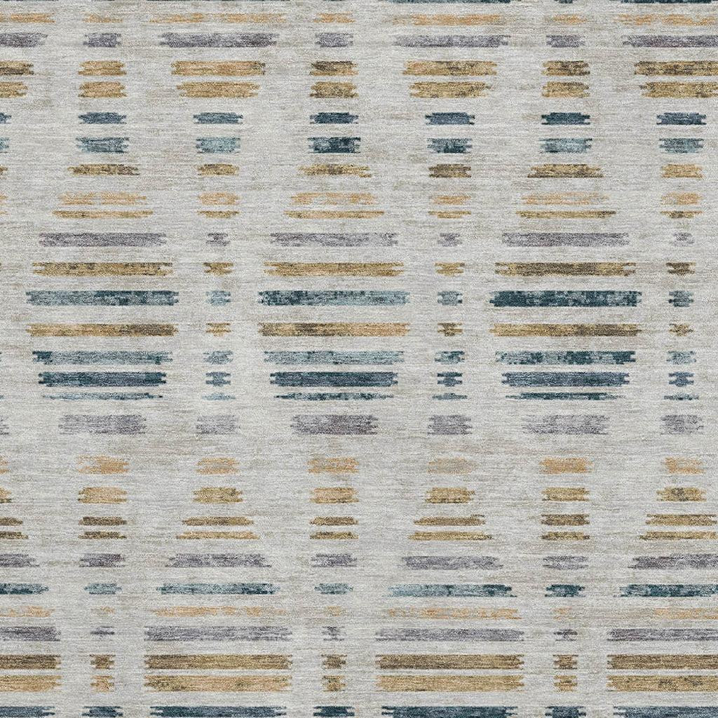Set an inviting tone in your space with this 9-foot x 12-foot linen and blue striped washable area rug with uv protection. Ideal for spaces with kids and pets, this rug is stain resistant to help repel dirt and spilled liquids. Built to last, this rug crafted from polyester fibers is known for its durability and long lasting appeal. Rugs are a great way to showcase your style, hide imperfections, warm your home and reduce noise. This larger sized, transitional styled rug is ready to create a focal point or statement piece in your room. 108.00-inch h x 144.00-inch w x 0.39-inch d.