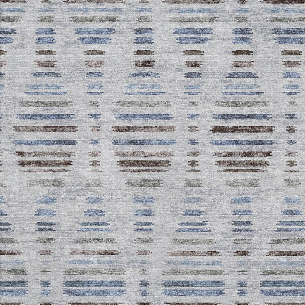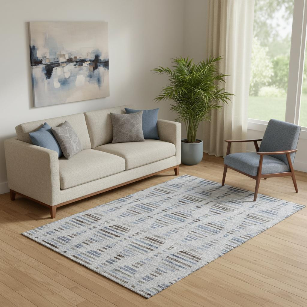 Add great coloration and comfortable texture to your space with this 5-foot x 8-foot light taupe and blue striped washable area rug with uv protection. Ideal for spaces with kids and pets, this rug is stain resistant to help repel dirt and spilled liquids. Built to last, this rug crafted from polyester fibers is known for its durability and long lasting appeal. Rugs are a great way to showcase your style, hide imperfections, warm your home and reduce noise. This larger sized, transitional styled rug is ready to create a focal point or statement piece in your room. 60.00-inch h x 90.00-inch w x 0.39-inch d.