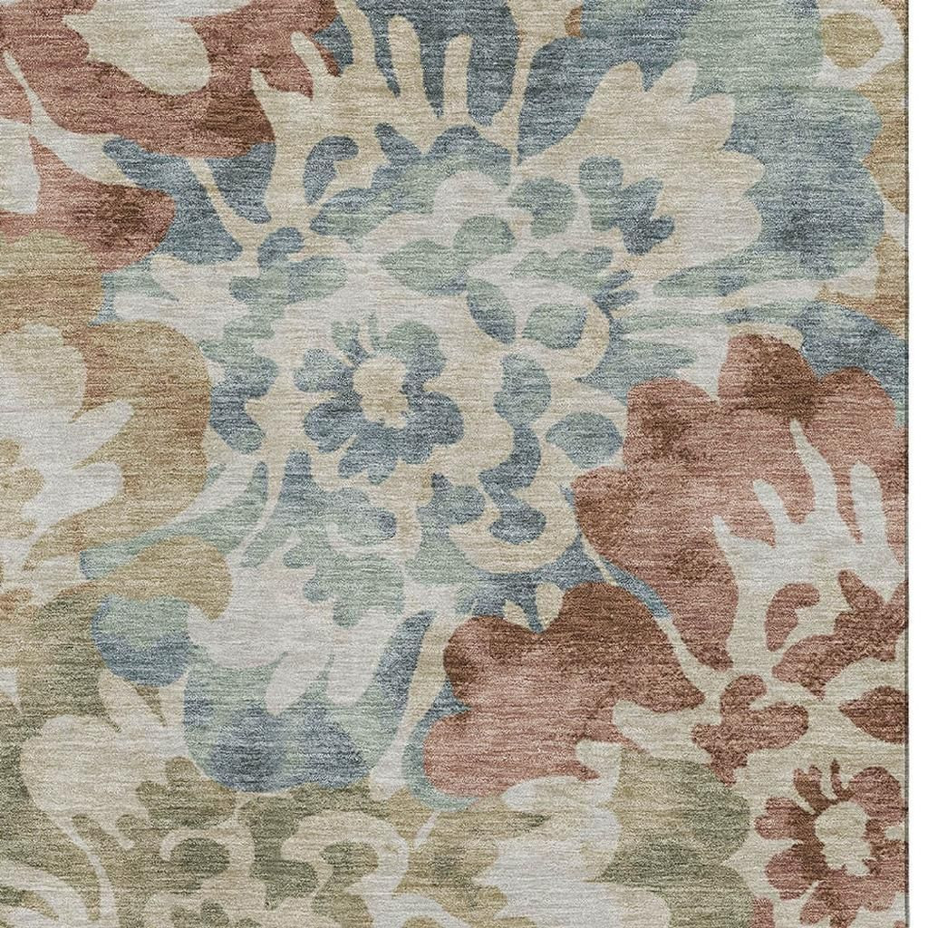 Set an inviting tone in your space with this 9-foot x 12-foot rust and blue floral washable area rug with uv protection. Ideal for spaces with kids and pets, this rug is stain resistant to help repel dirt and spilled liquids. Built to last, this rug crafted from polyester fibers is known for its durability and long lasting appeal. Rugs are a great way to showcase your style, hide imperfections, warm your home and reduce noise. This larger sized, transitional styled rug is ready to create a focal point or statement piece in your room. 108.00-inch h x 144.00-inch w x 0.39-inch d.