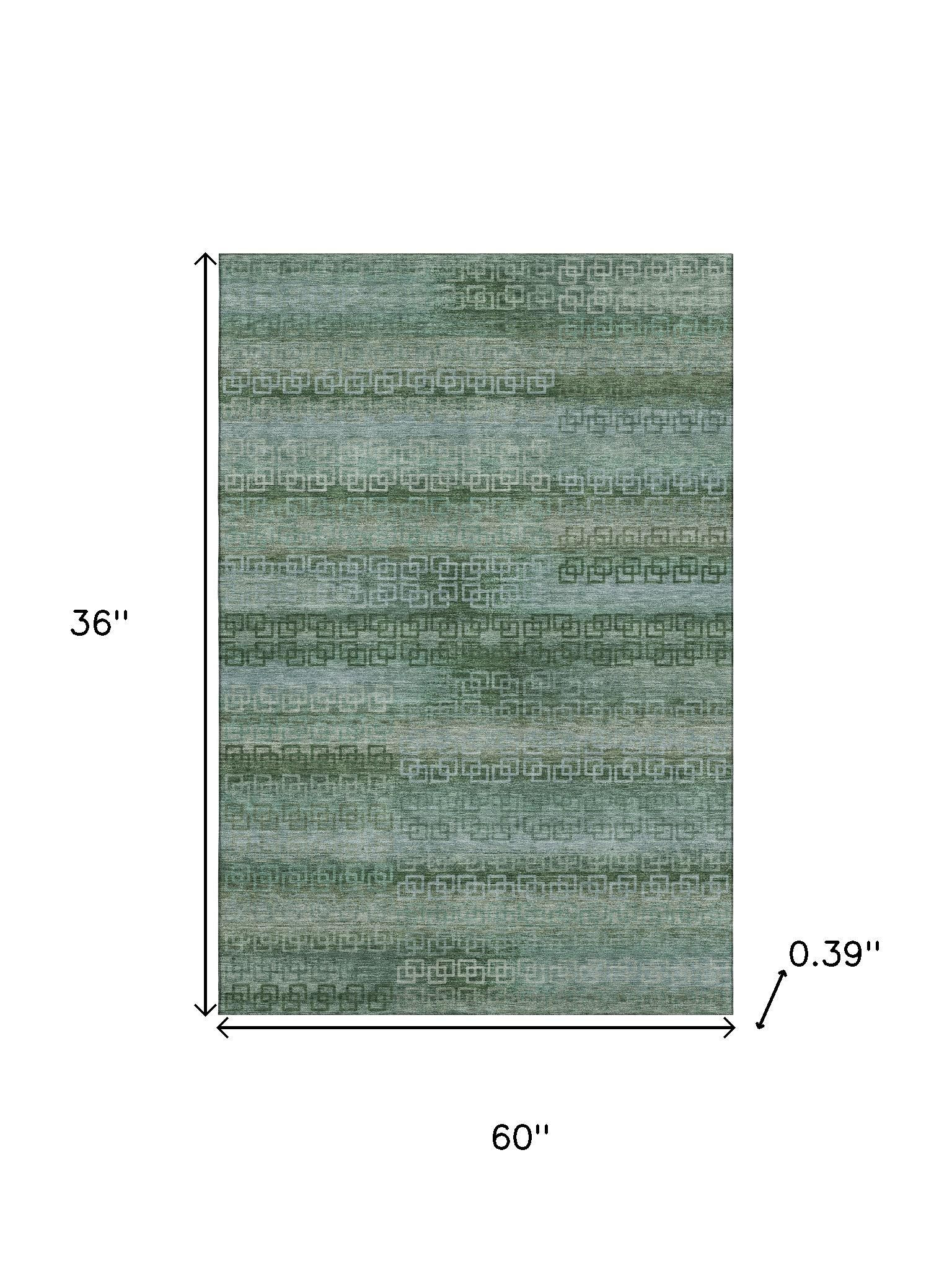 Add some artistry to your room with this 3-foot x 5-foot sage and blue striped washable area rug with uv protection. Ideal for spaces with kids and pets, this rug is stain resistant to help repel dirt and spilled liquids. Built to last, this rug crafted from polyester fibers is known for its durability and long lasting appeal. Rugs are a great way to showcase your style, hide imperfections, warm your home and reduce noise. This smaller sized, transitional styled rug is just what you need for your walkway, bedside, in front of door, cabinet, refrigerator, or chair. 36.00-inch h x 60.00-inch w x 0.39-inch d.