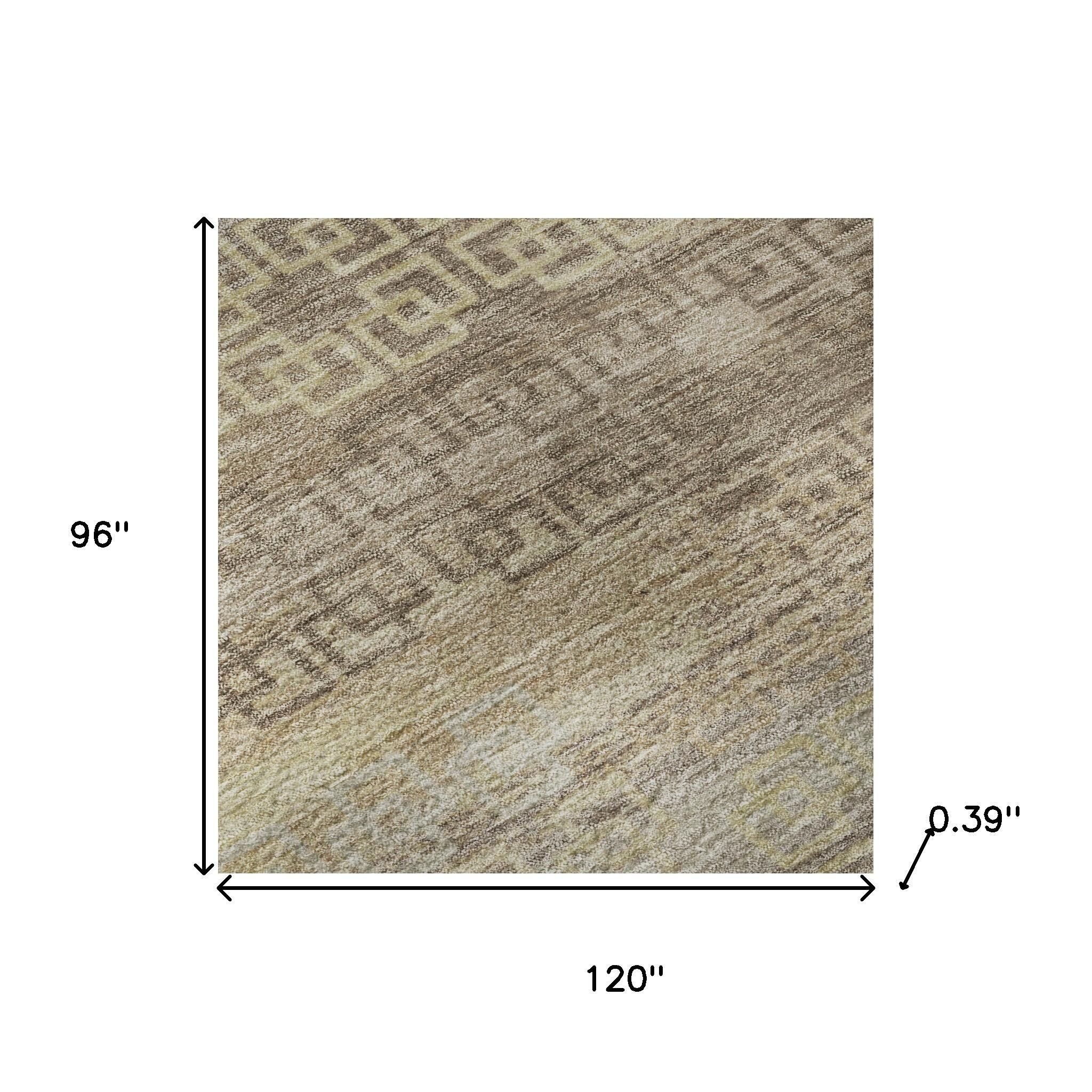This 8-foot x 10-foot beige and brown striped washable area rug with uv protection, is a great way to add warmth to a room. Ideal for spaces with kids and pets, this rug is stain resistant to help repel dirt and spilled liquids. Built to last, this rug crafted from polyester fibers is known for its durability and long lasting appeal. Rugs are a great way to showcase your style, hide imperfections, warm your home and reduce noise. This larger sized, transitional styled rug is ready to create a focal point or statement piece in your room. 96.00-inch h x 120.00-inch w x 0.39-inch d.
