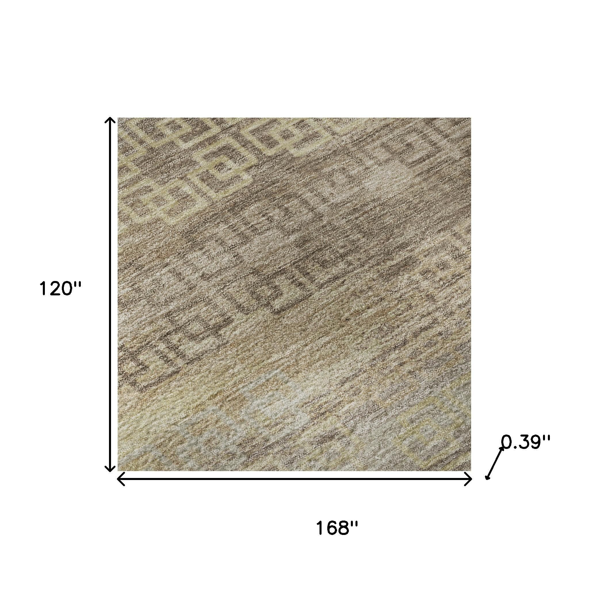 This 10-foot x 14-foot beige and brown striped washable area rug with uv protection, is a great way to add warmth to a room. Ideal for spaces with kids and pets, this rug is stain resistant to help repel dirt and spilled liquids. Built to last, this rug crafted from polyester fibers is known for its durability and long lasting appeal. Rugs are a great way to showcase your style, hide imperfections, warm your home and reduce noise. This larger sized, transitional styled rug is ready to create a focal point or statement piece in your room. 120.00-inch h x 168.00-inch w x 0.39-inch d.