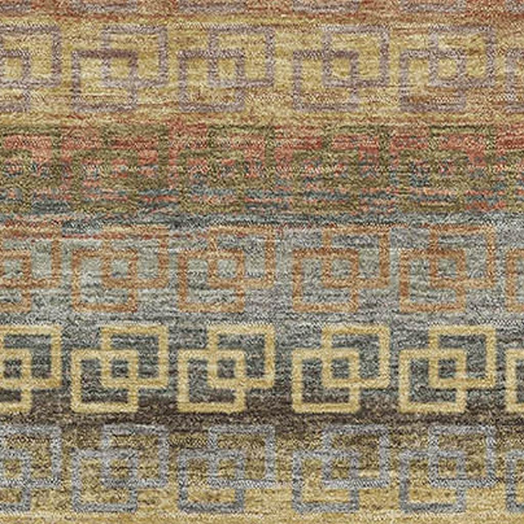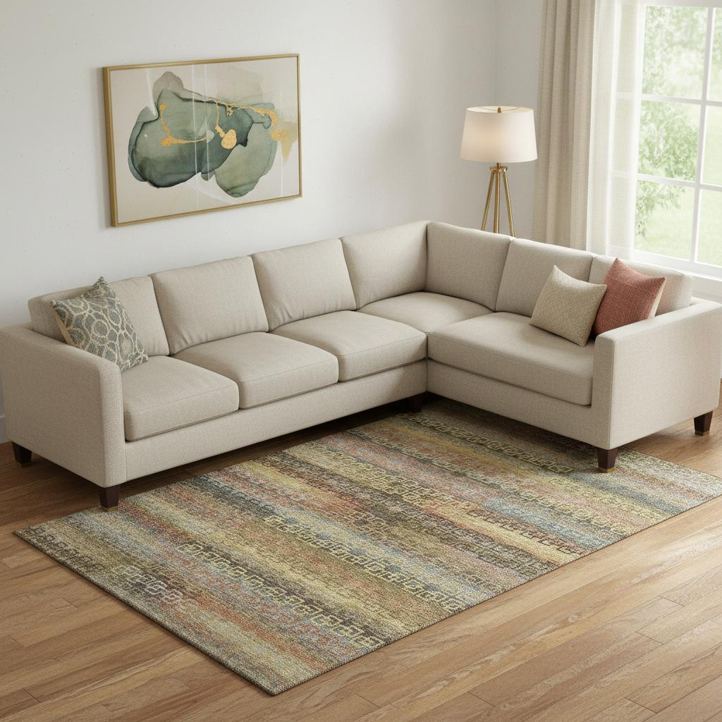 This 8-foot x 10-foot brown and gold striped washable area rug with uv protection, is a great way to add warmth to a room. Ideal for spaces with kids and pets, this rug is stain resistant to help repel dirt and spilled liquids. Built to last, this rug crafted from polyester fibers is known for its durability and long lasting appeal. Rugs are a great way to showcase your style, hide imperfections, warm your home and reduce noise. This larger sized, transitional styled rug is ready to create a focal point or statement piece in your room. 96.00-inch h x 120.00-inch w x 0.39-inch d.