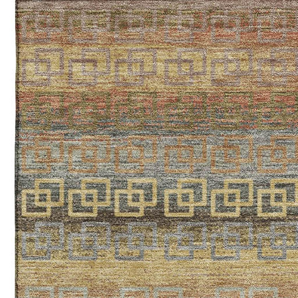 Add great coloration and comfortable texture to your space with this 9-foot x 12-foot brown and gold striped washable area rug with uv protection. Ideal for spaces with kids and pets, this rug is stain resistant to help repel dirt and spilled liquids. Built to last, this rug crafted from polyester fibers is known for its durability and long lasting appeal. Rugs are a great way to showcase your style, hide imperfections, warm your home and reduce noise. This larger sized, transitional styled rug is ready to create a focal point or statement piece in your room. 108.00-inch h x 144.00-inch w x 0.39-inch d.